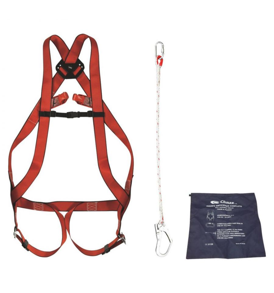 Cet EPI est conforme aux normes CE : EN 361, EN 354 et EN 362 et peut supporter une charge totale de 140 kg.