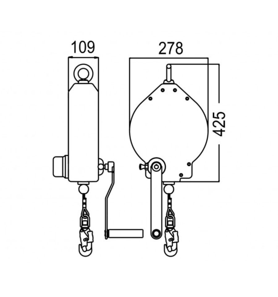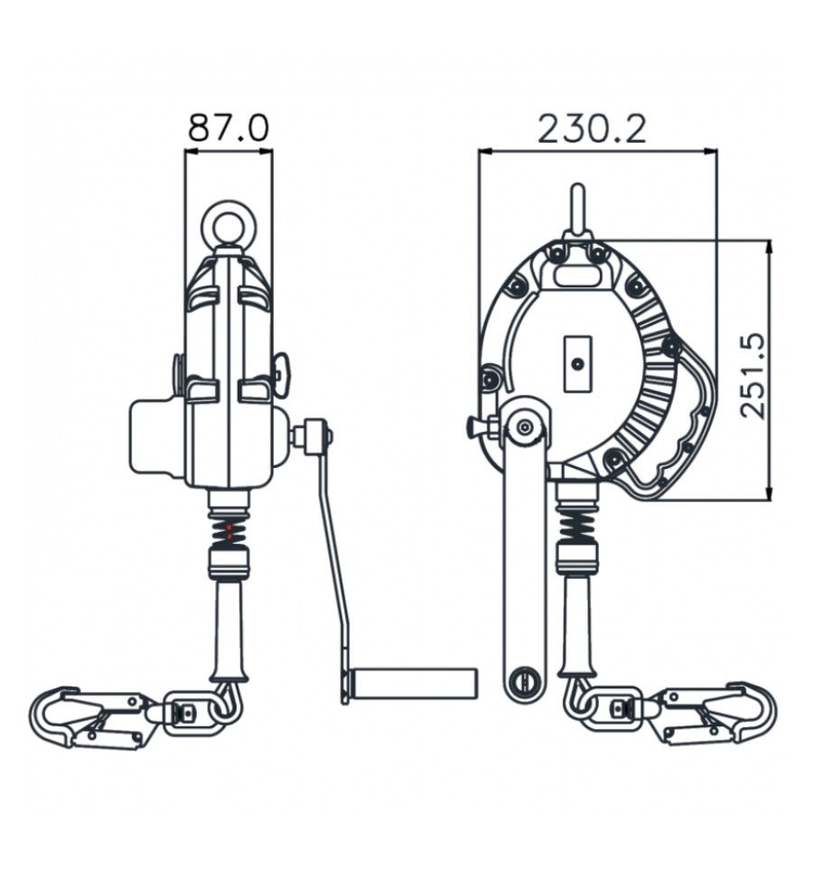 L'antichute avec treuil intégré est équipé de deux connecteurs, un système de frein et un système de récupération.