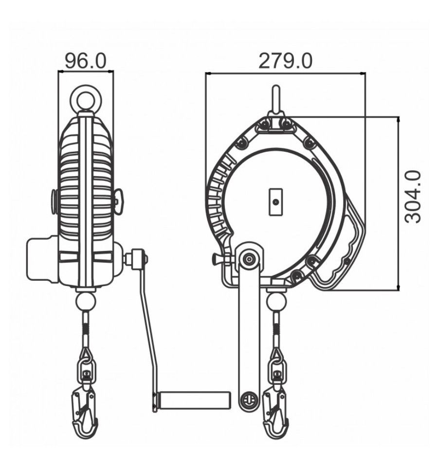 Il est doté d’un carter en polymère haute résistance avec une poignée de portage ergonomique et antidérapante pour un transport confortable. L’antichute intègre également un câble en acier galvanisé de 4,5 mm muni d’une poignée de préhension, assurant une manipulation facile et sécurisée.