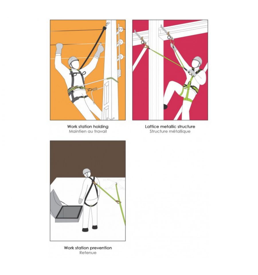 Ajoutez une longe à votre harnais pour vous accrocher à une nacelle, à un encadrement de porte ou fenêtre...