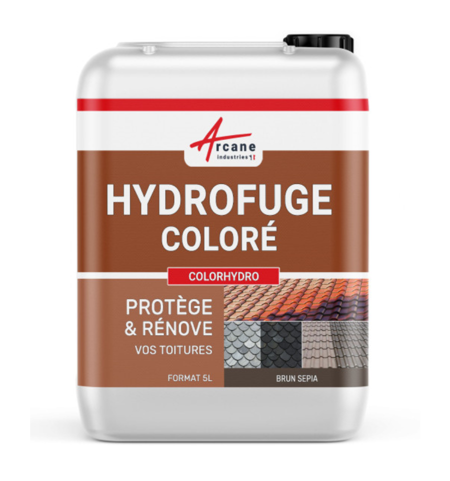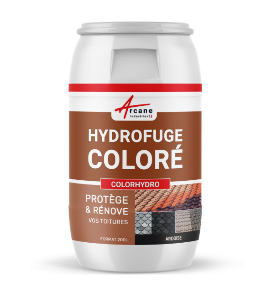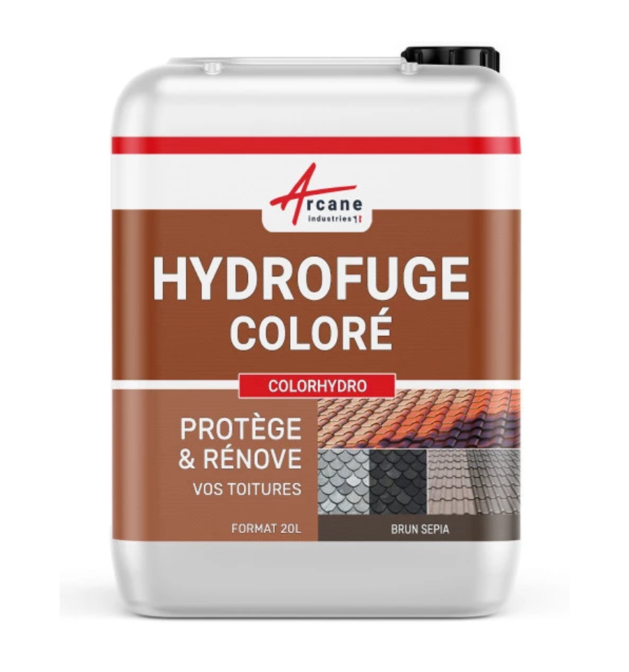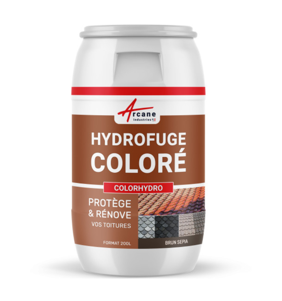 Pour s’adapter au mieux à la couleur d’origine de votre toiture, nous vous proposons 3 teintes : ardoise (RAL 9004), brun sepia (RAL 8014), tuile (RAL 8004). Le produit ne sera pas opaque, c’est un hydrofuge teinté, son rendu dépendra donc du support en dessous. Son application laisse un fini légèrement brillant.