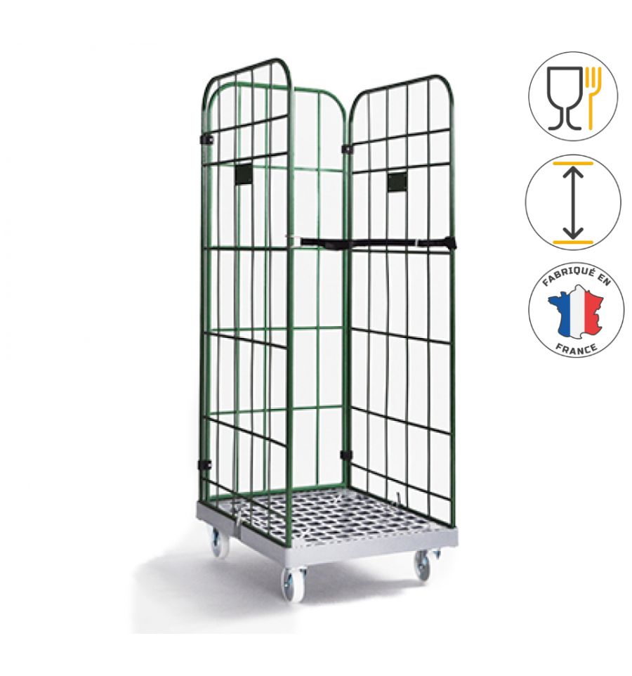 Découvrez aussi notre chariot rolls 2 côtés avec socle PEHD ainsi que notre roll grillagé métallique 3 côtés.