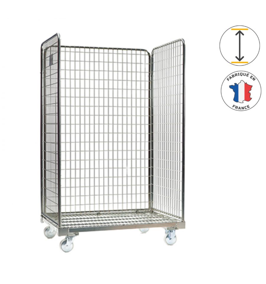 Caractéristiques du roll conteneur grillagé à 3 côtés