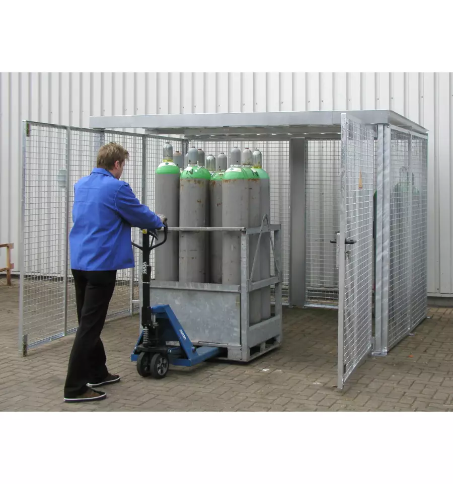 La construction de l'abri assure une protection optimale des bouteilles de gaz. Conformément aux normes TGRS 510, cet abri offre une sécurité maximale, non seulement pour vos équipements industriels, mais aussi pour la protection de vos collaborateurs. Il est conçu pour être fixé au sol, garantissant une stabilité même dans des conditions climatiques extrêmes.