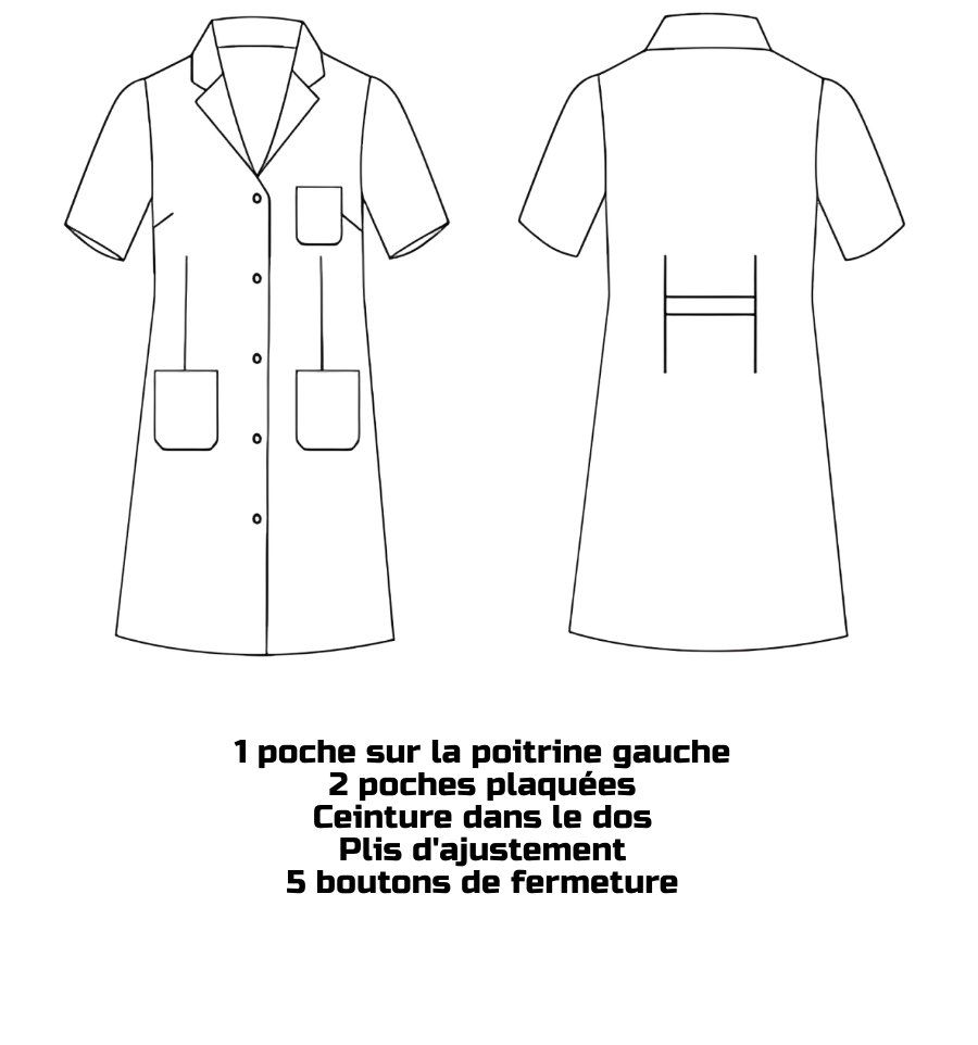 Optez pour la blouse médicale femme manche courte, idéale pour le personnel hospitalier, les cliniciens et autres métiers médicaux.