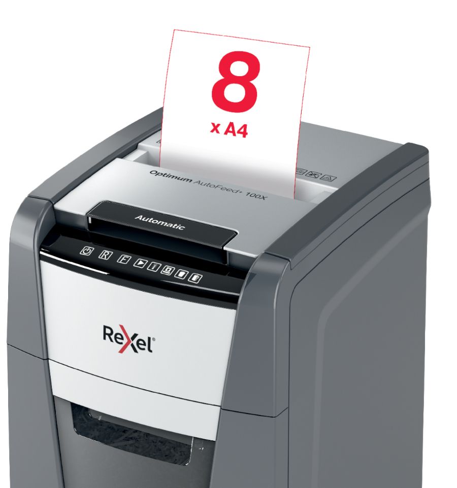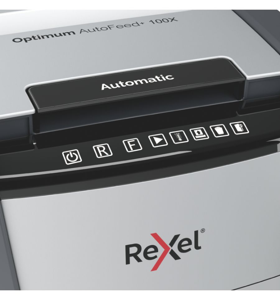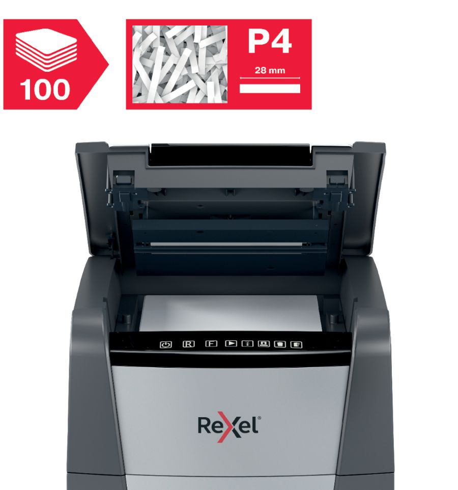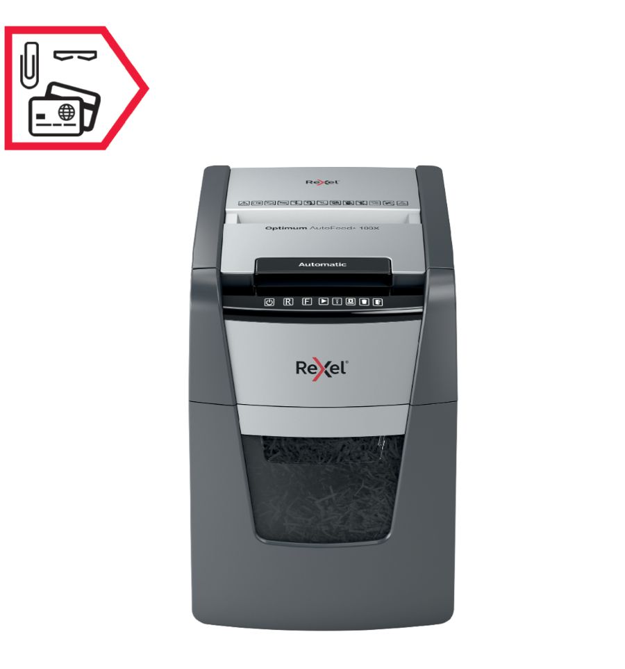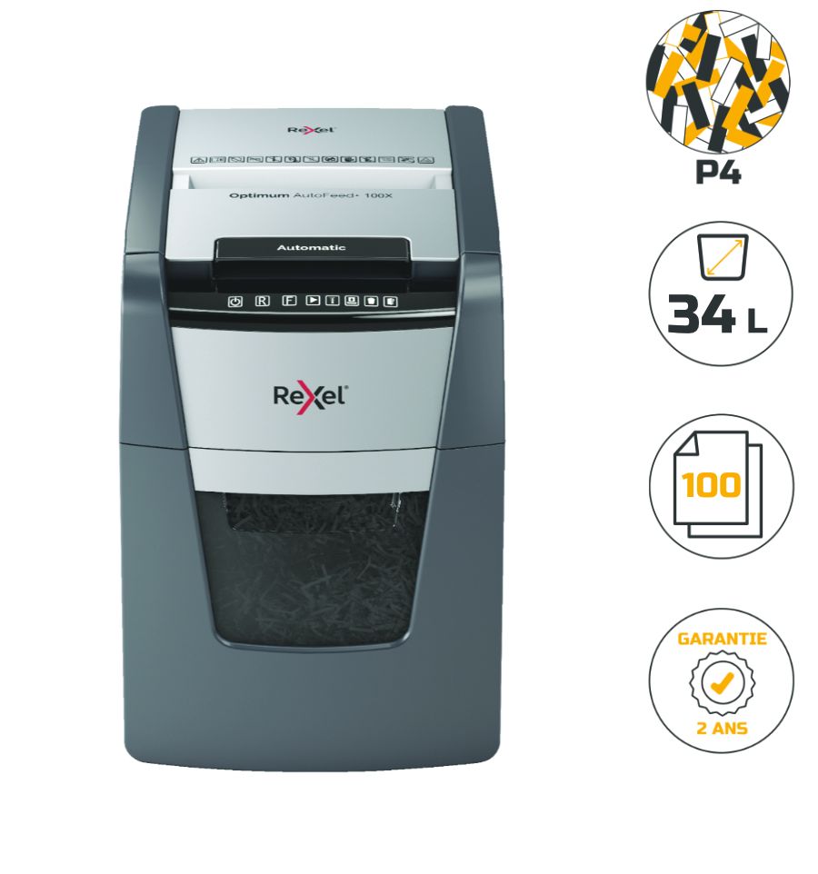 Destructeur de documents auto coupe croisée P4 100 feuilles 34 L Rexel Optimum AutoFeed+ 100X