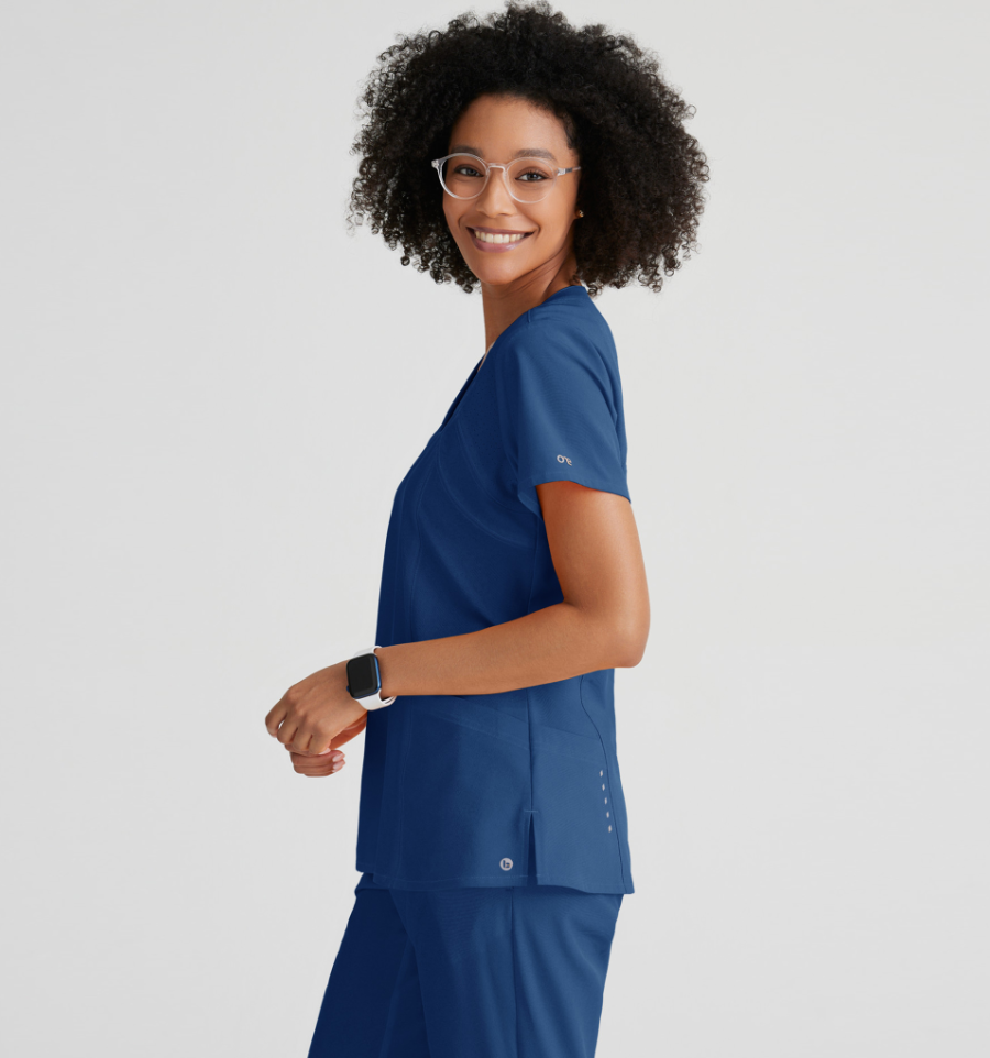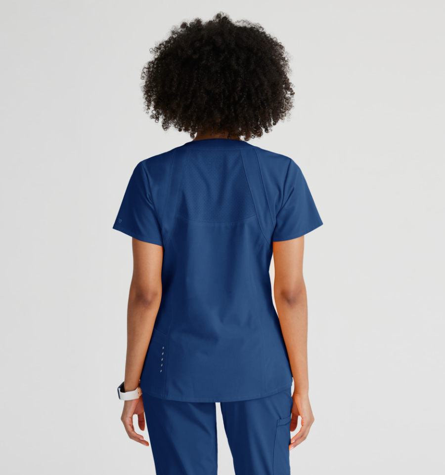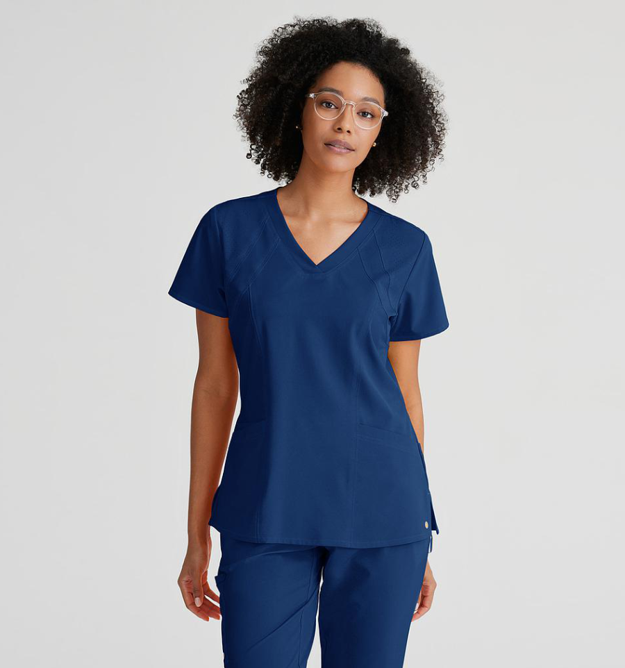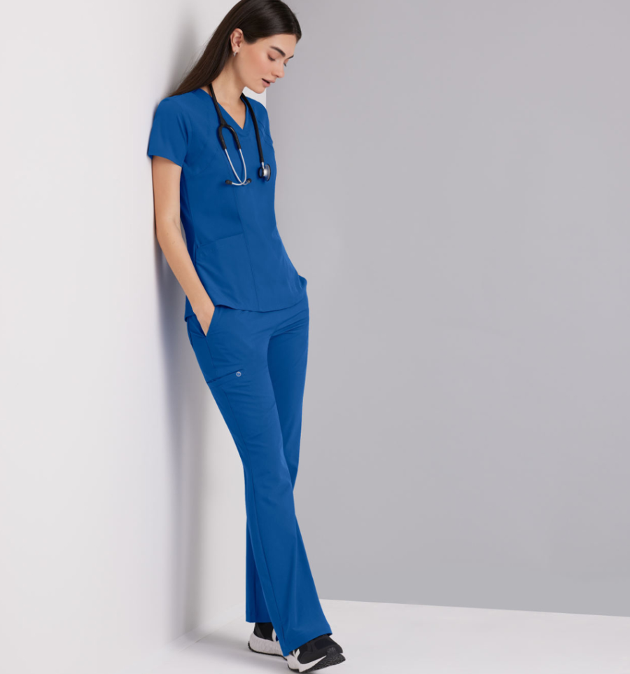 Ces vêtements aide soignante sont conçus avec 50% de polyester, 43% de polyester recyclé à partir de bouteilles et 7% de spandex.