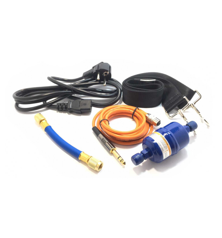 Nous vous conseillons d'utiliser une balance pour charge avec la station de récupération fluide pour éviter toute surcharge de remplissage. Entre la station de récupération et le flexible avec vanne, utilisez un filtre déshydrateur.