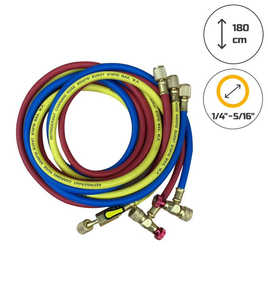 Chaque flexible de charge climatisation mesure 180 cm de long.
