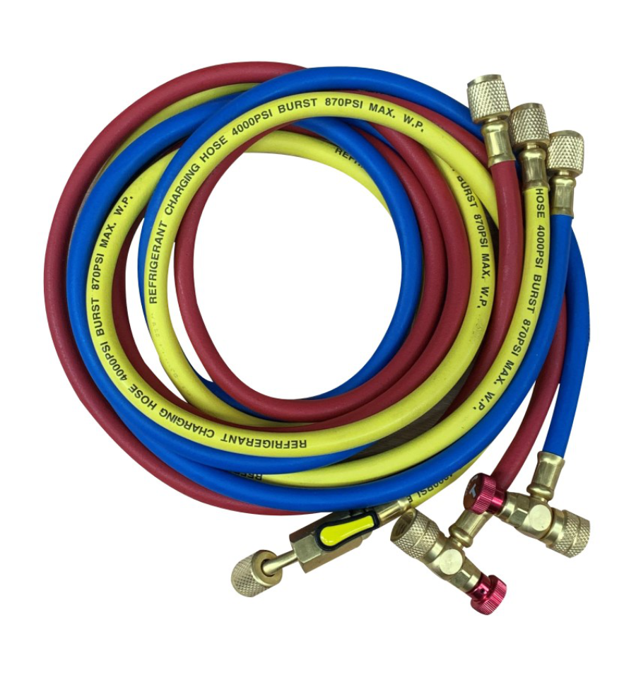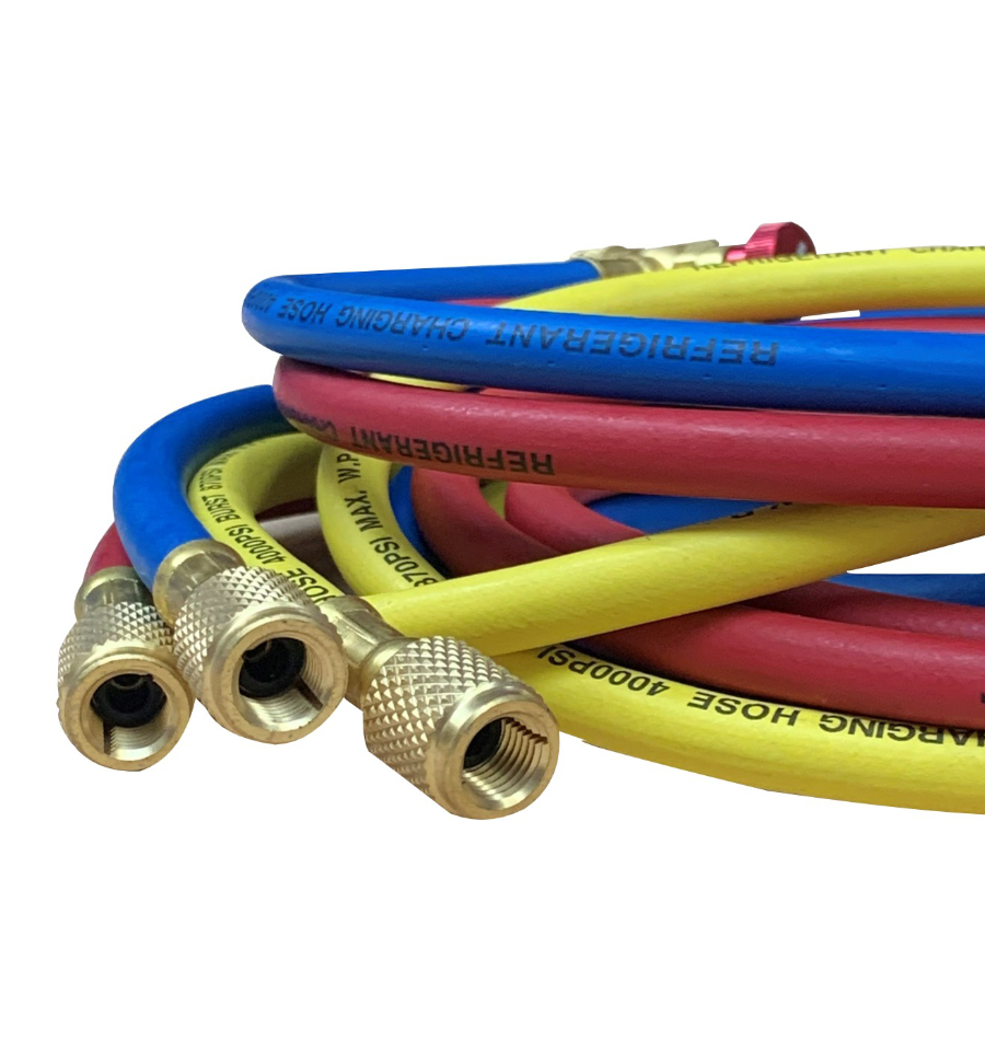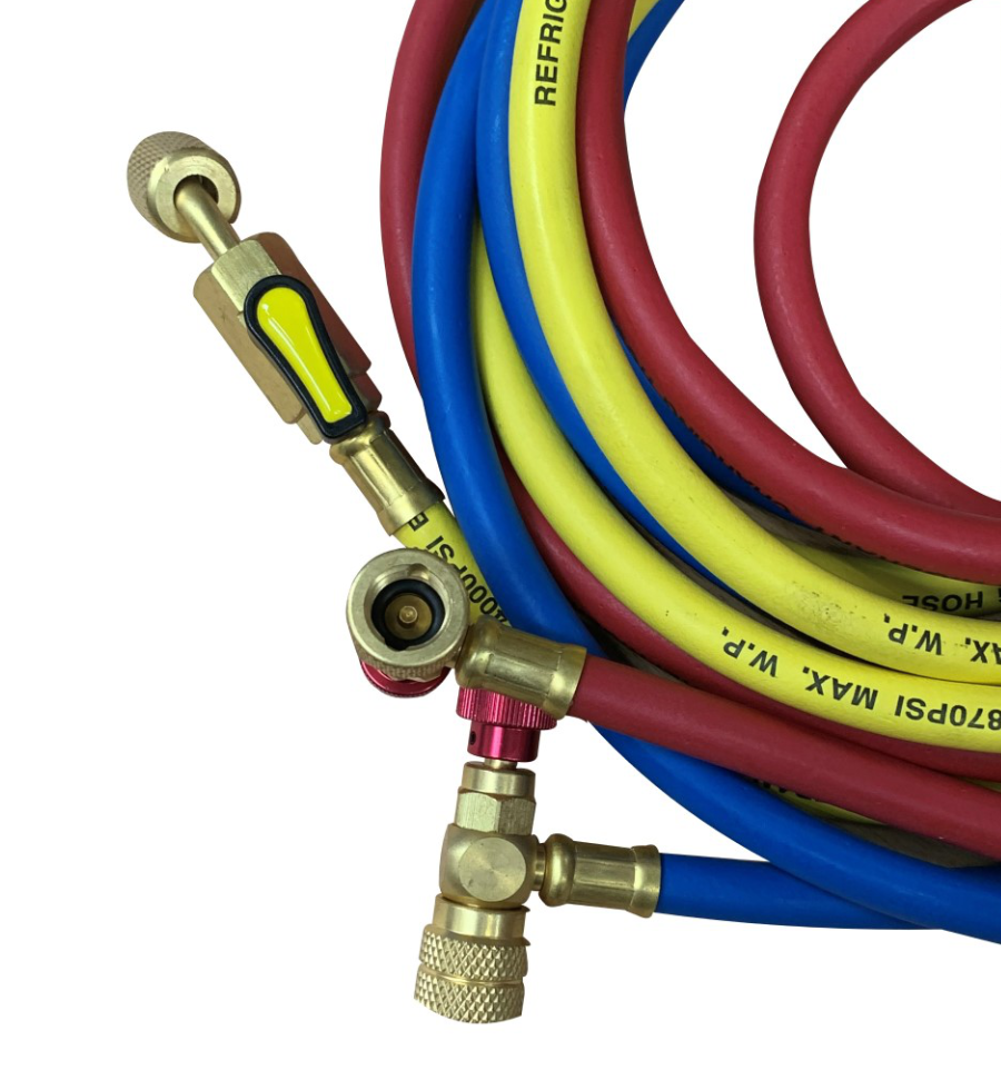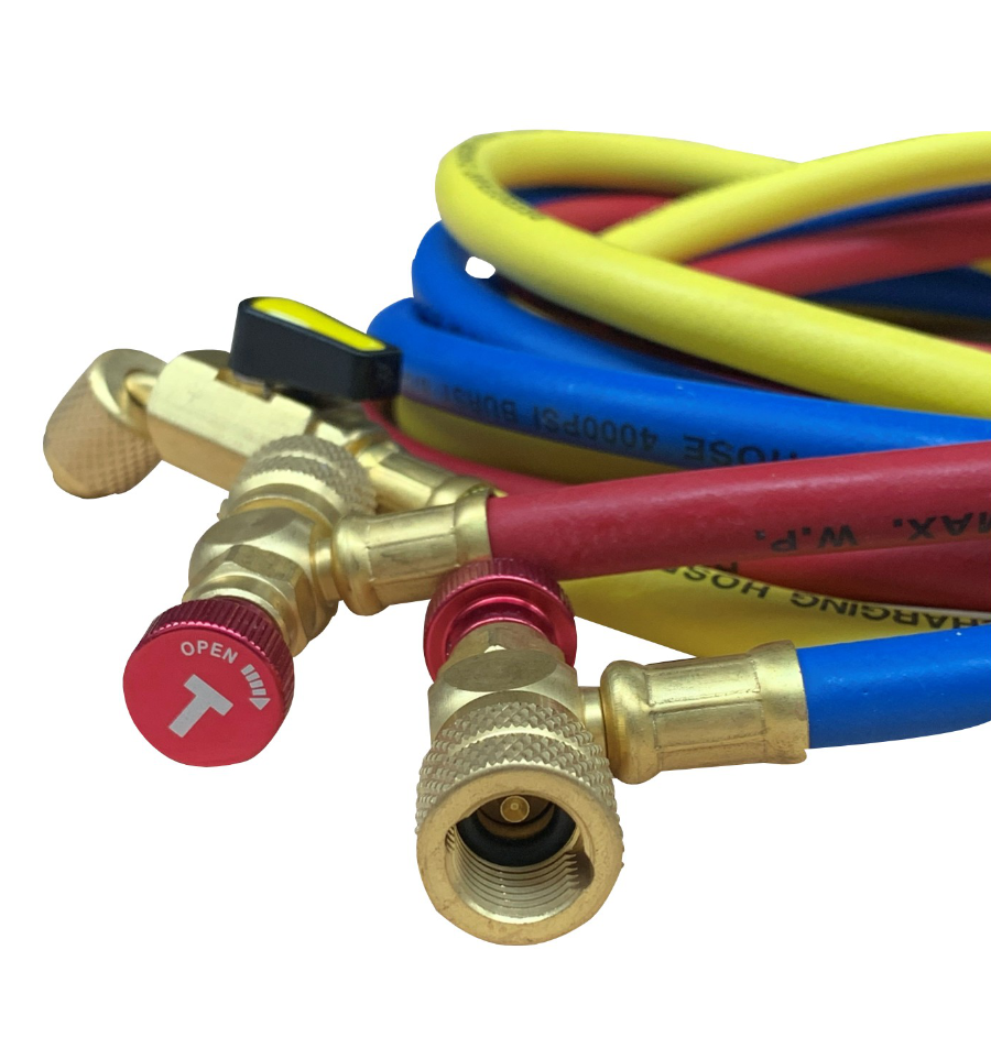 Notre flexible avec vanne est compatible avec tous les fluides frigorigènes : R410A, R134a, R32, R600, R290 etc.
