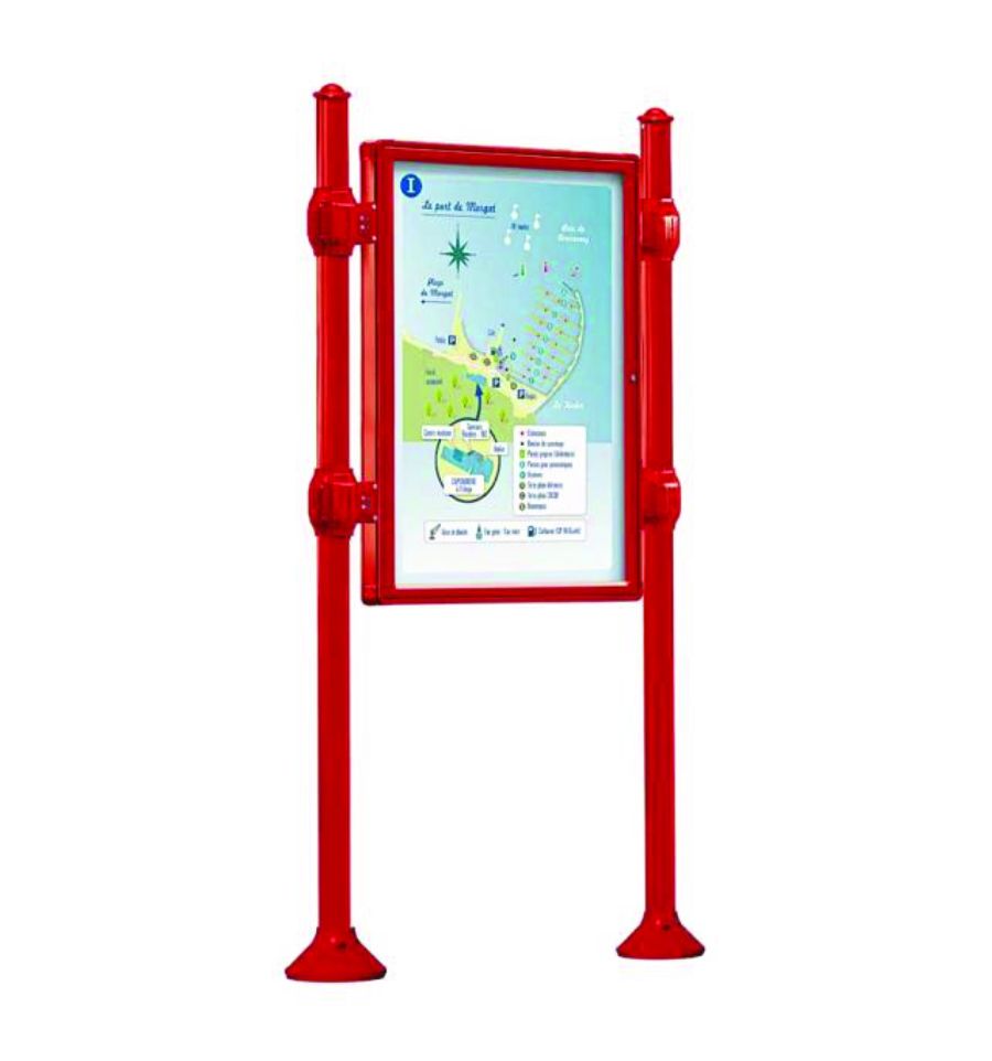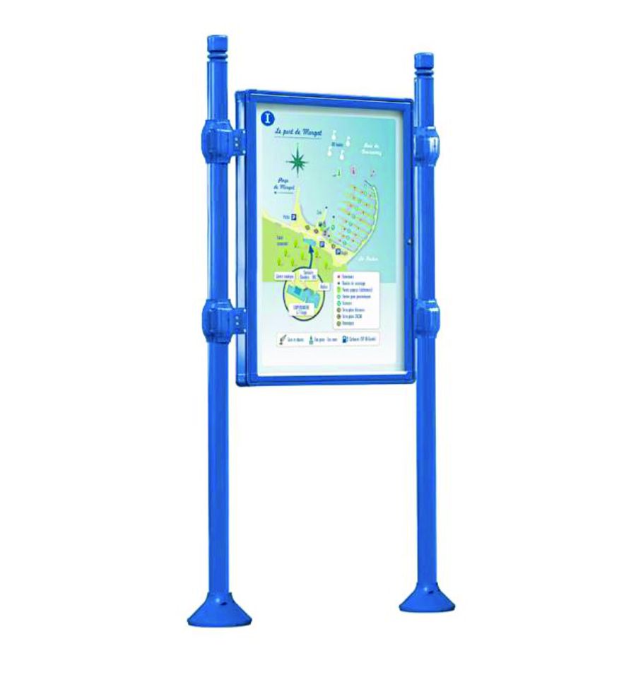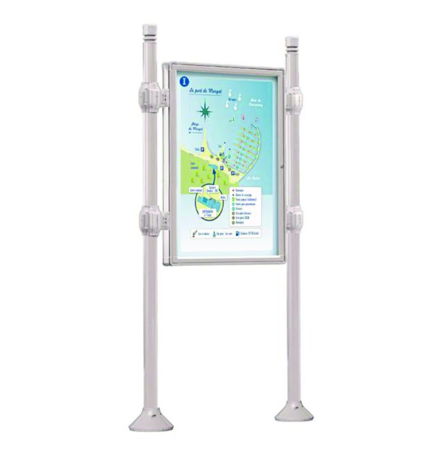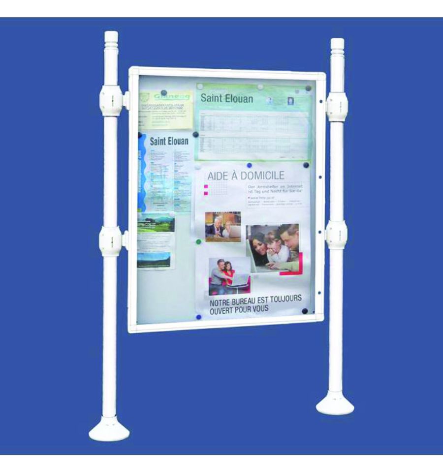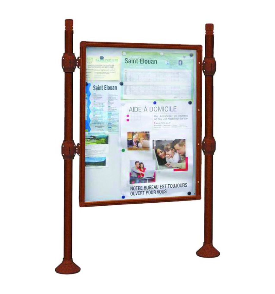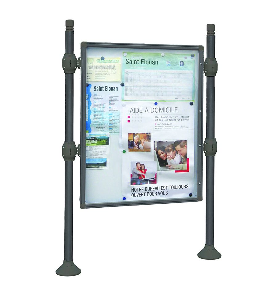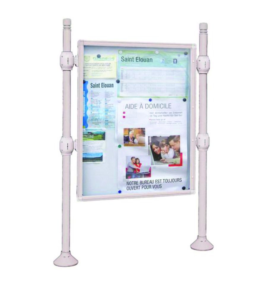 L'affichage double face permet d'afficher davantage de documents dans un espace réduit et d'optimiser l'espace à votre disposition. Retrouvez le panneau d'affichage libre sur poteau avec vitrine simple face ainsi que le panneau d'affichage libre avec tôle en acier.