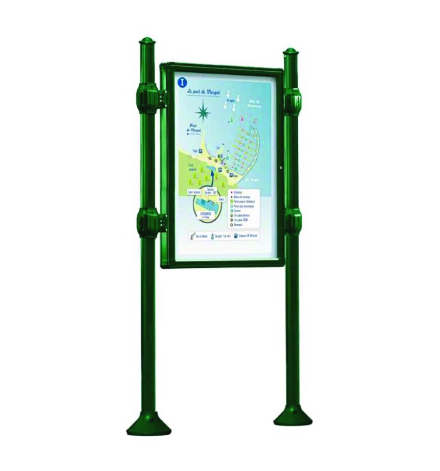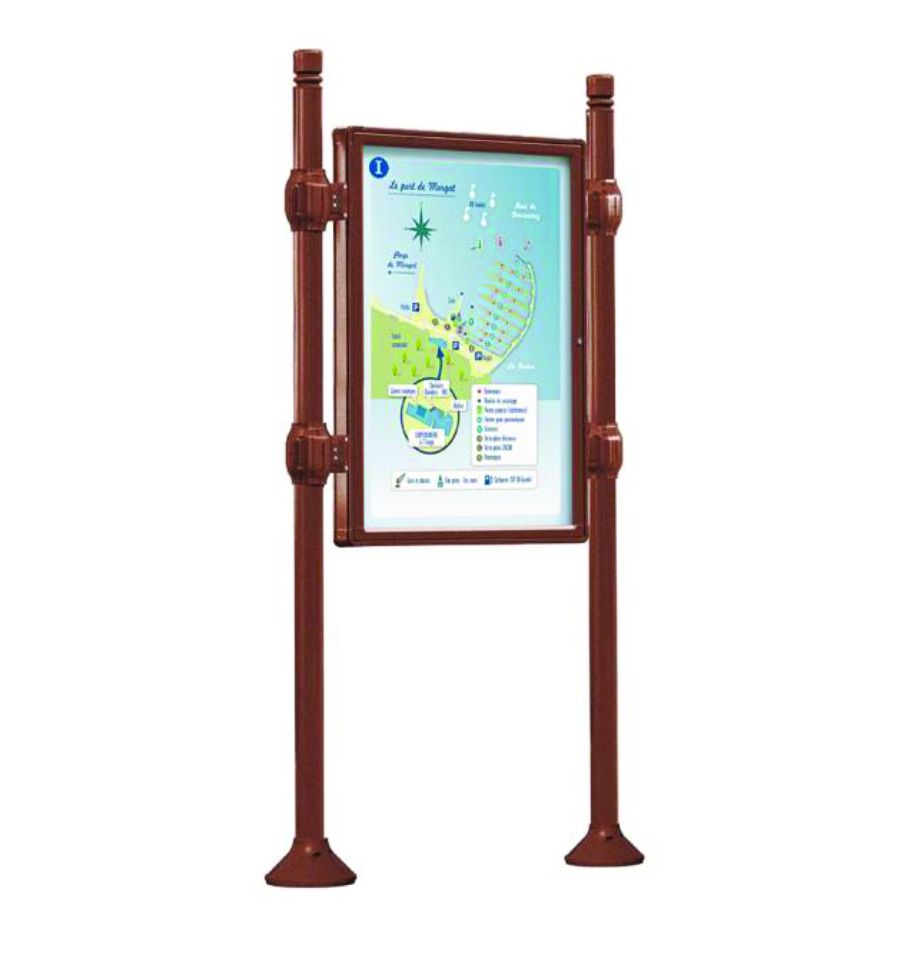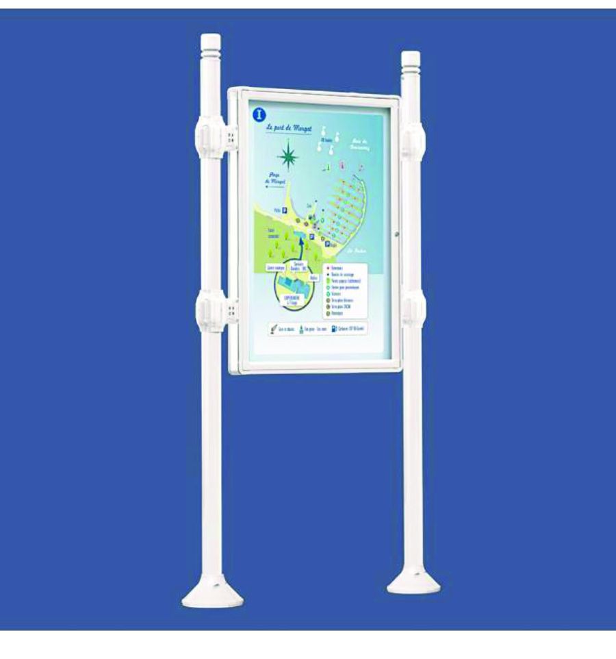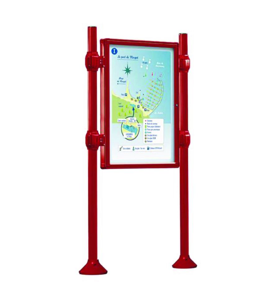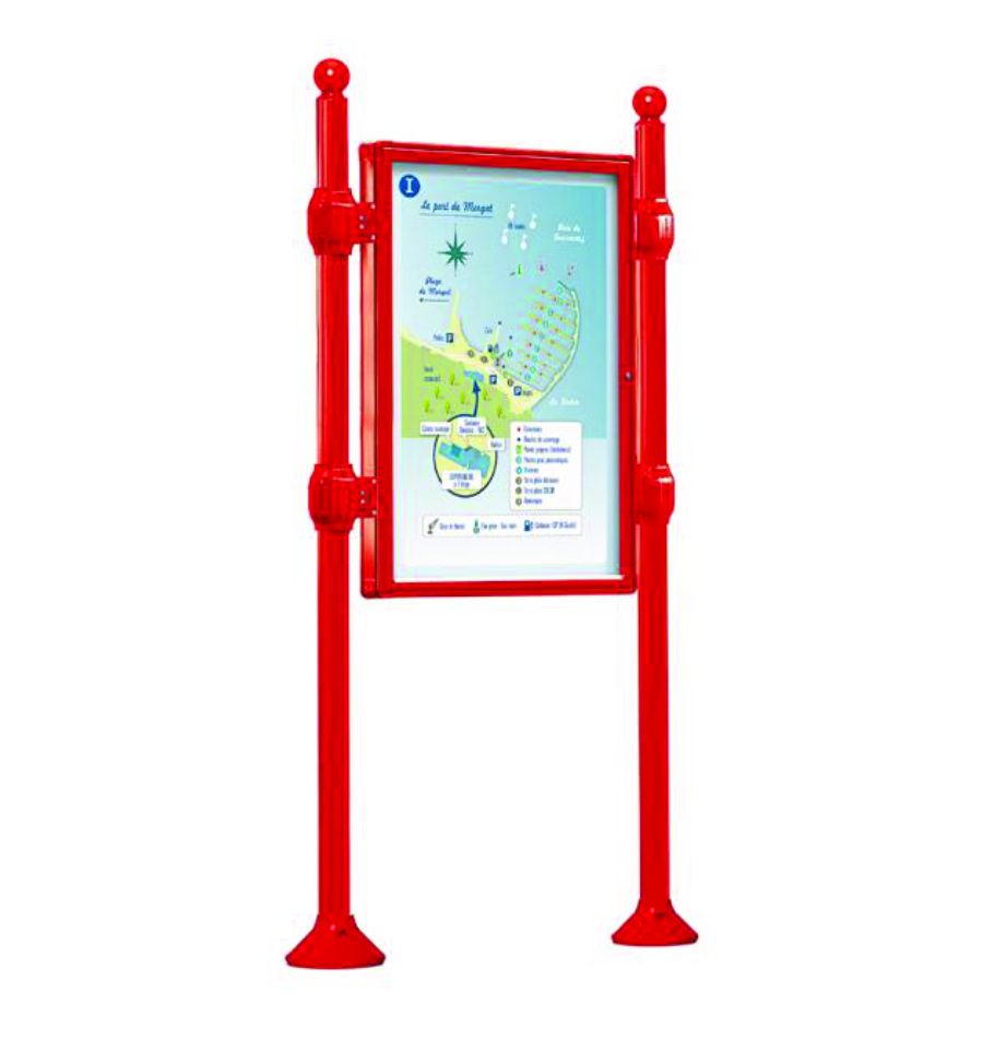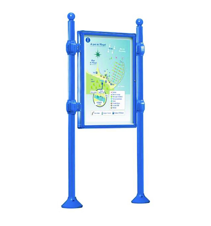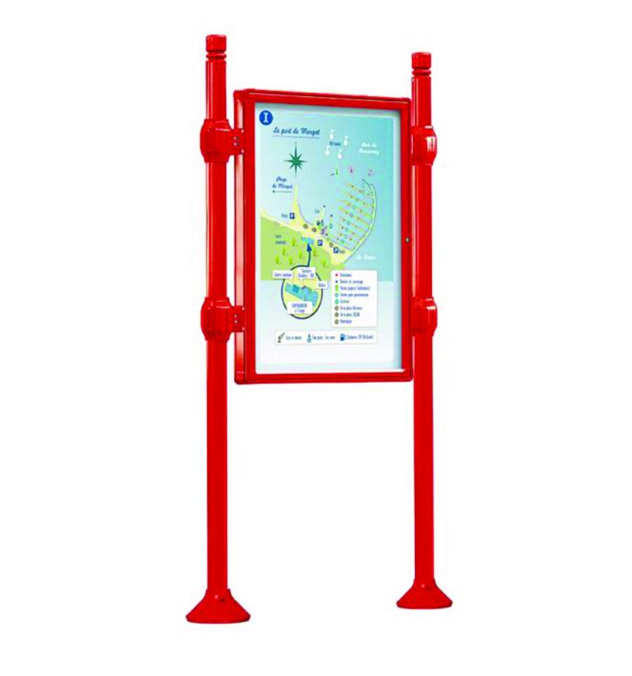 L'affichage double face permet d'afficher davantage de documents dans un espace réduit et d'optimiser l'espace à votre disposition. Retrouvez le panneau d'affichage libre sur poteau avec vitrine simple face ainsi que le panneau d'affichage libre avec tôle en acier.