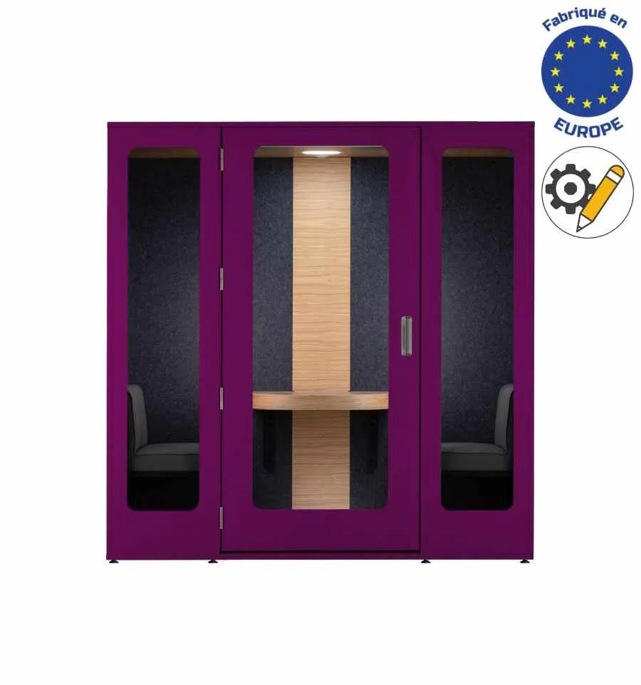 Le coloris de la cabine acoustique 4 personnes est au choix : Il peut être identique sur la porte et la structure, ou différent (2 coloris, en option). Il vous suffit d'indiquer le(s) RAL souhaité(s).