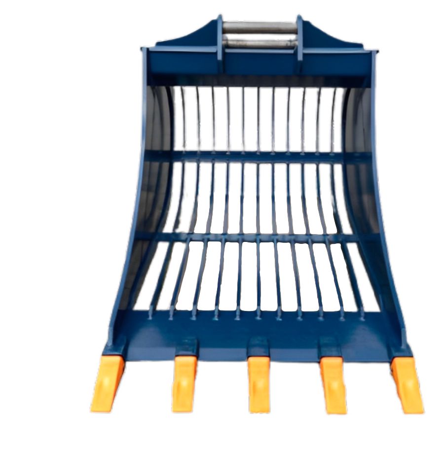 Un godet est l'élément qui s'attache au bout du bras de votre machine (pelleteuse, pelle, minipelle, etc). Ici, le godet claire voie ou squelette sert à trier et séparer les matériaux sur des travaux de carrières et de mines.
