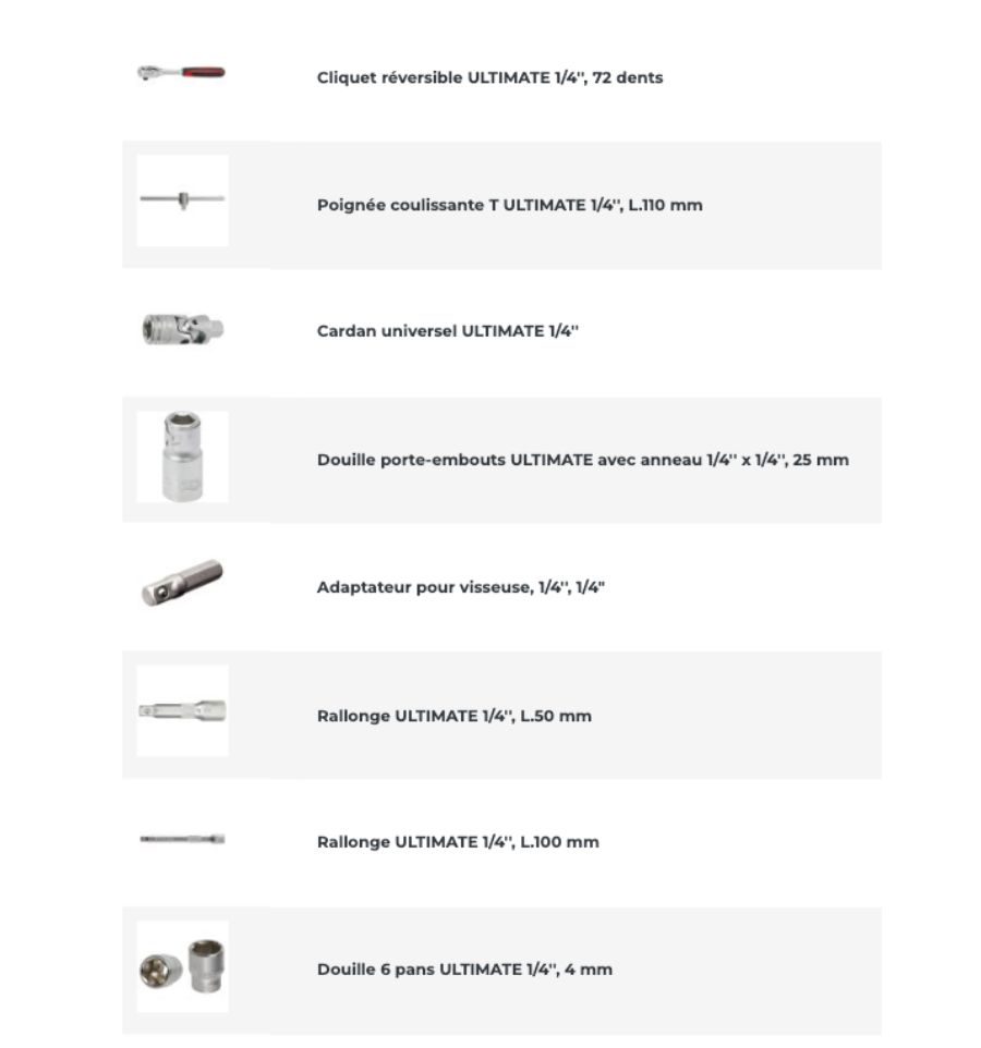 | Embout de vissage | Mini coffret d'embouts de vissage 1/4" (32 pcs) | 1 |