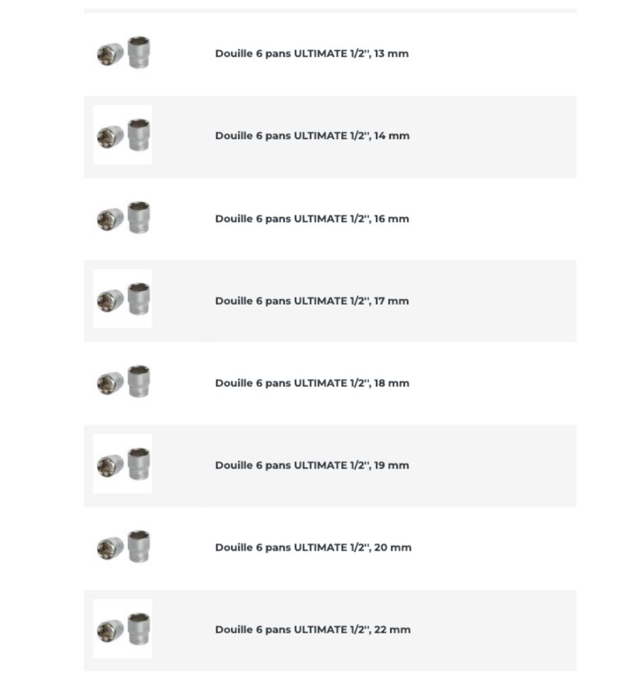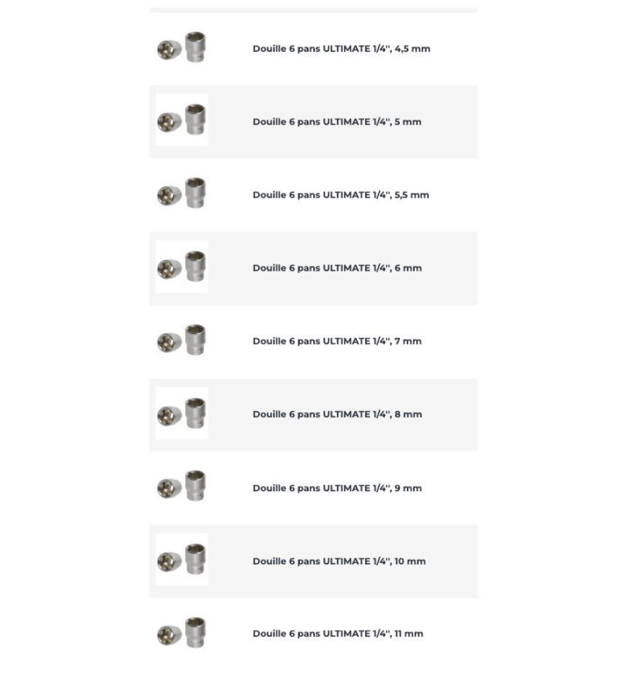 | Rallonge | 1/4" L. 50 mm 100 mm et 125 mm | 3 |