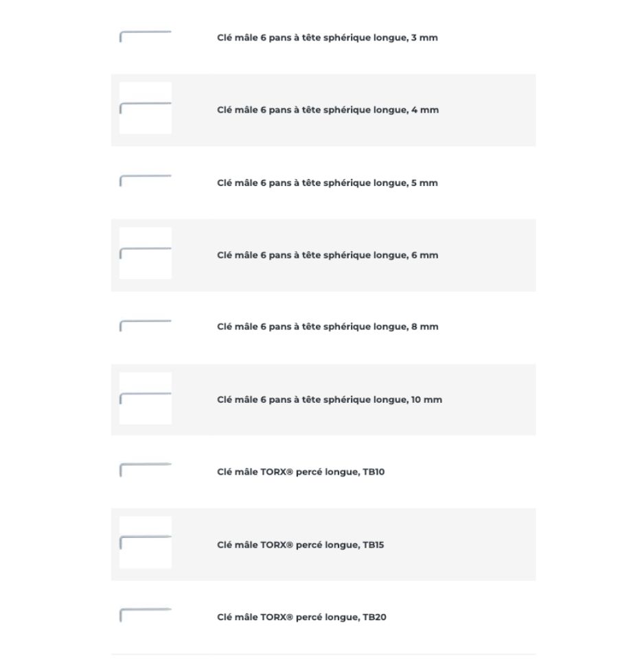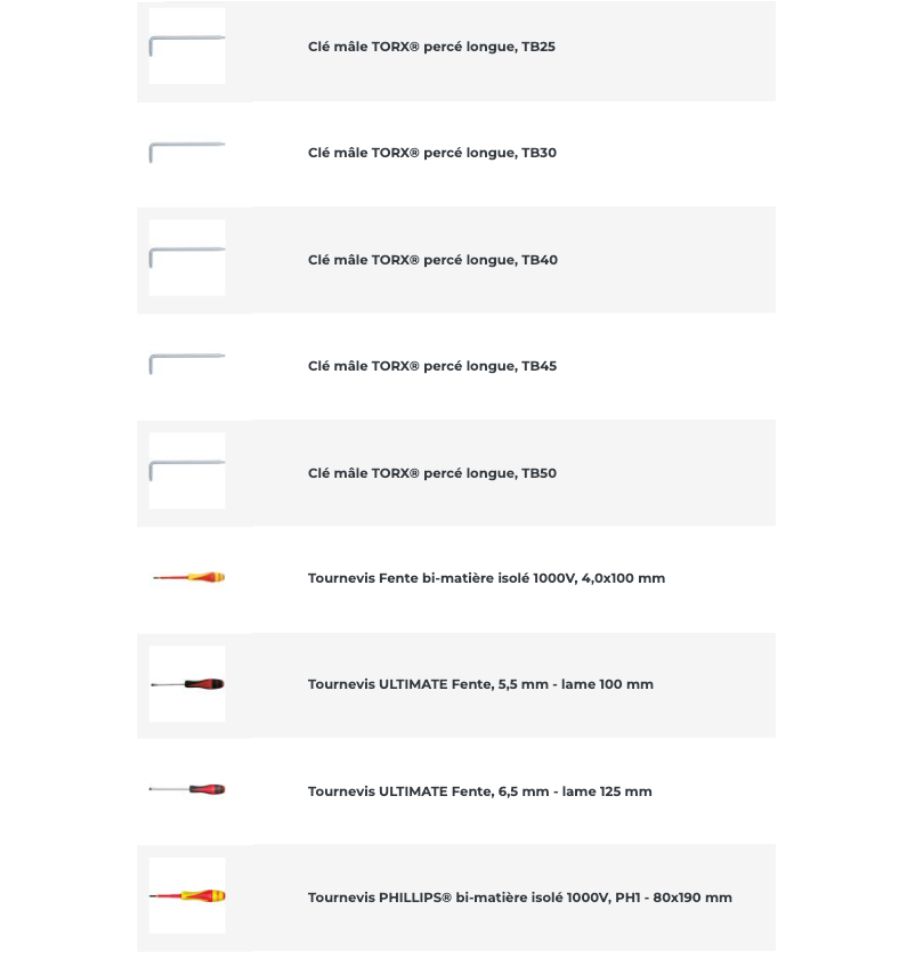 | Tournevis | Cruciforme / plat / électronique / testeur | 8 |