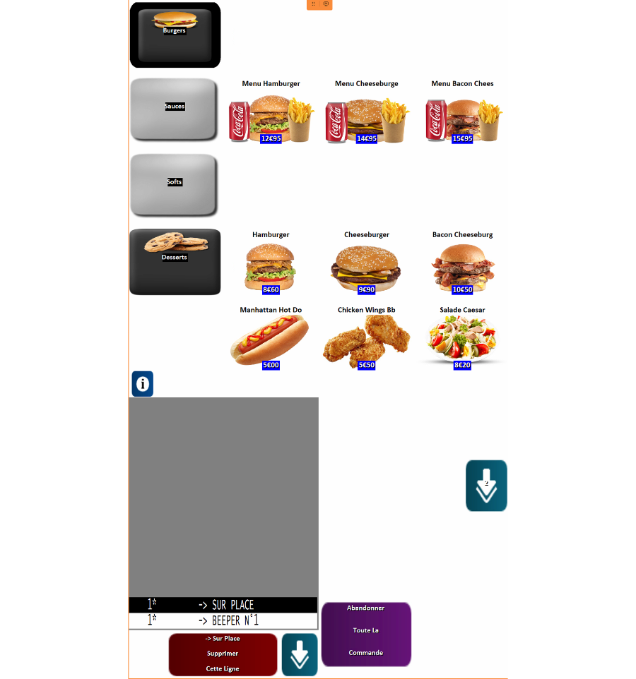 La borne restaurant possède un logiciel intuitif inclus directement dans la borne.