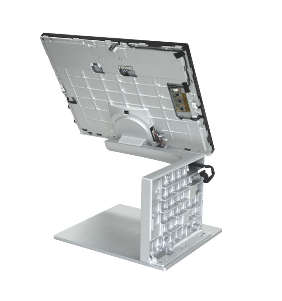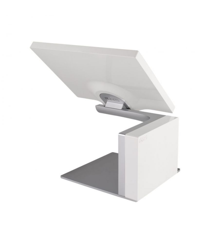 L'écran ne repose sur aucun socle massif ou imposant et permet ainsi de révéler un bel espace libre en dessous. Vous pouvez y installer librement votre imprimante thermique pour tickets de caisse (comprise dans le prix).