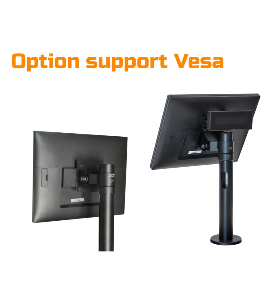 Disponible en 7 coloris, elle offre une ergonomie élégante grâce à son bras déporté. De plus, elle permet de dégager de l'espace sous l'écran pour y apposer l'imprimante tickets qui est vendue avec.