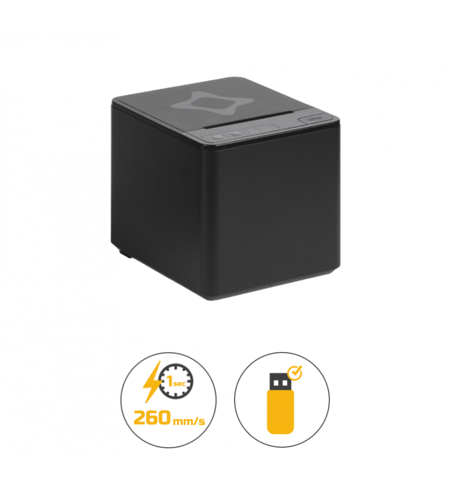 L'imprimante ticket de caisse est rapide et fonctionnelle, grâce à une vitesse d'impression de 260 mm/s et une largeur de papier de 80 mm. Elle est pensée pour une utilisation intensive, ce qui lui permet d'être fluide même durant les périodes de rush.