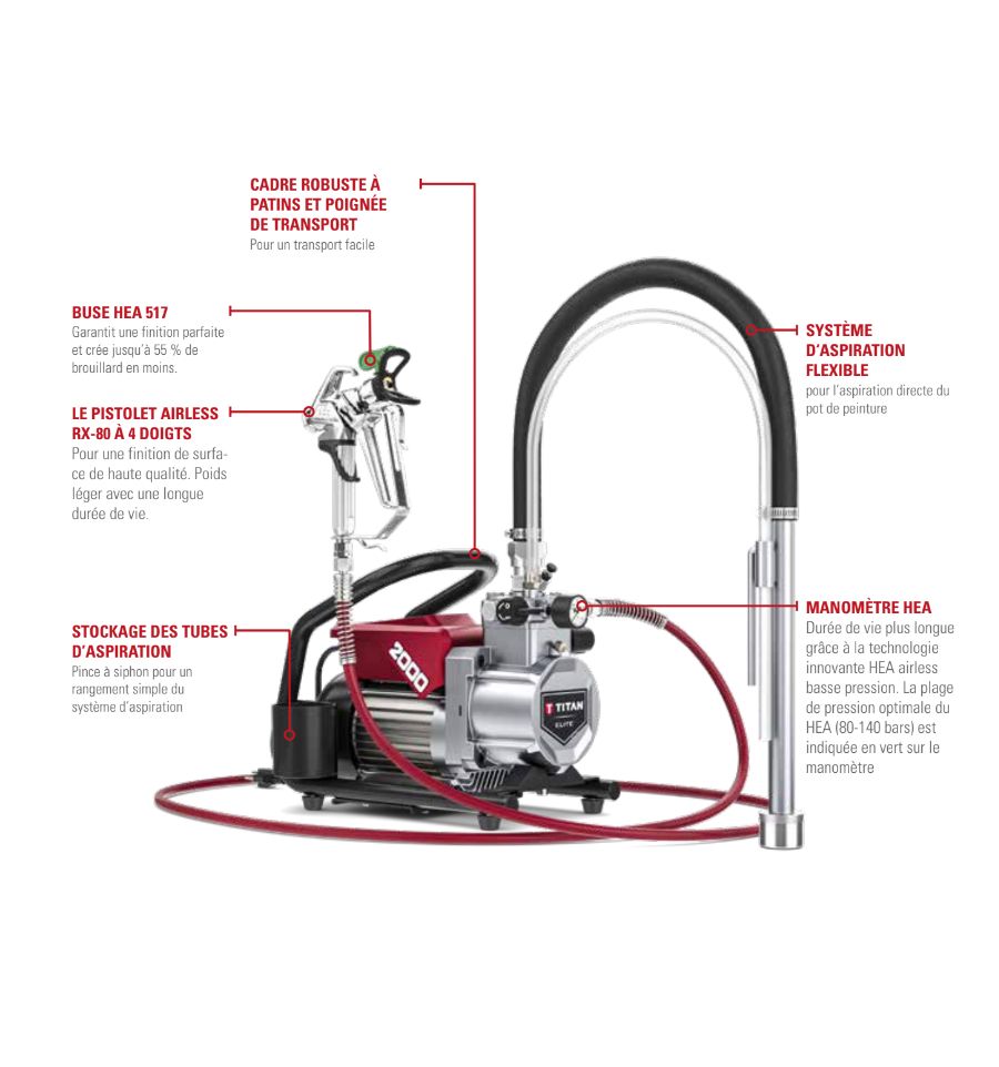 - Une canne d'aspiration flexible à mettre directement dans le pot de peinture,