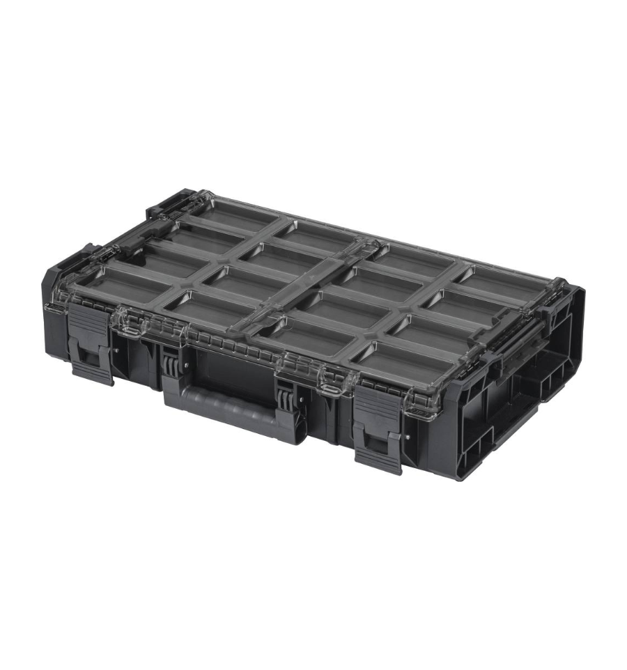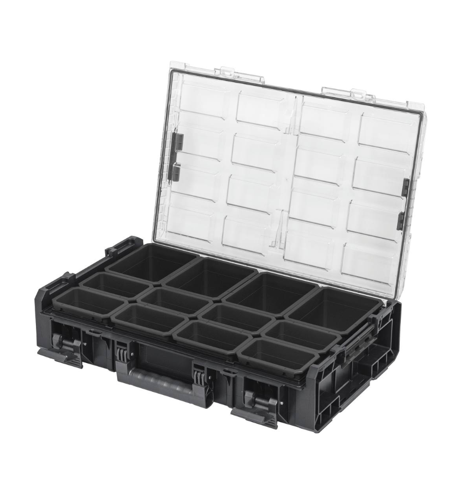 La dernière caisse, qui compose la boite à outils roulettes, est une mallette robuste, de petite contenance (L. 582 x l. 387 x H. 131mm), qui permet de séparer vos petites pièces telles que des vis, des boulons ou des embouts de tournevis, séparés grâce à 12 bacs à bec amovibles.