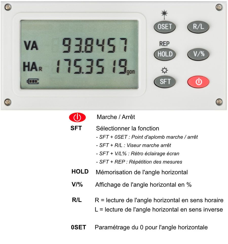 Cette précision, combinée à son codeur absolu, permettent d'obtenir des résultats en permanence, sans avoir besoin de recalibrer l'appareil. Même après extinction ou déplacement du théodolite, les lectures d'angles restent exactes.