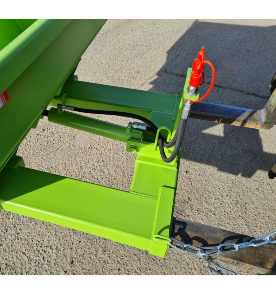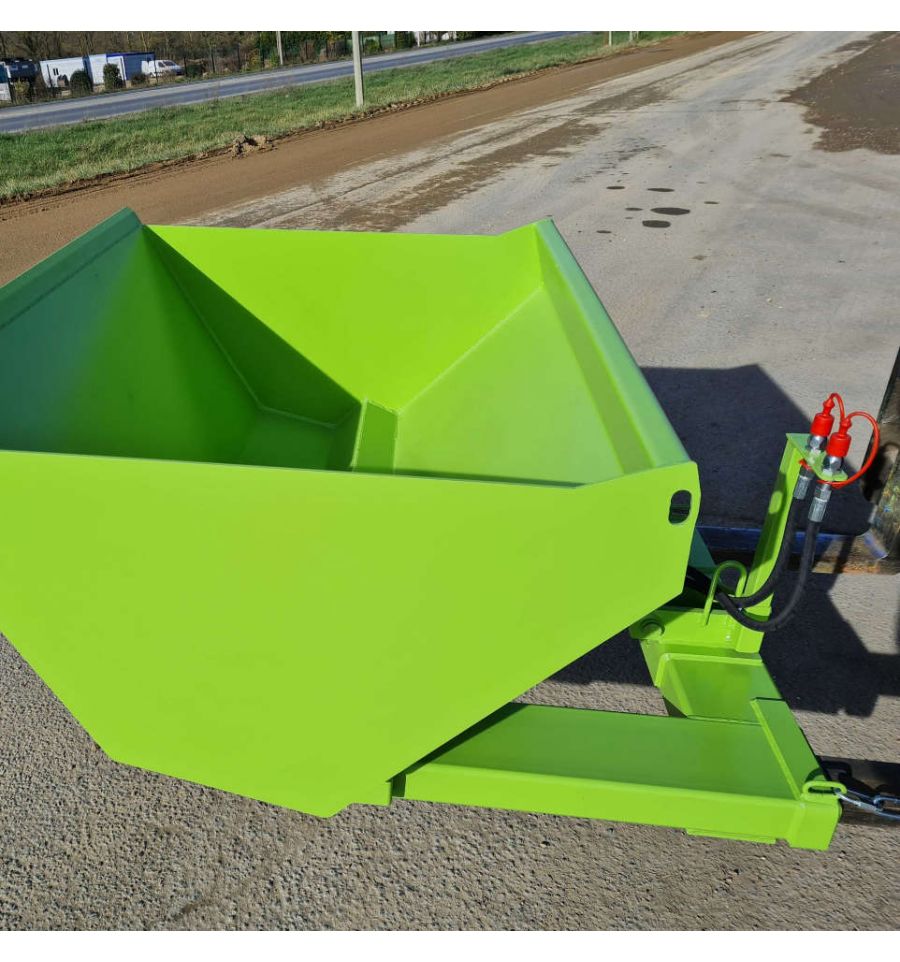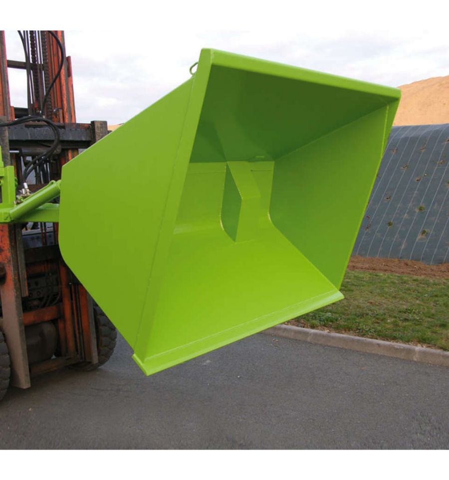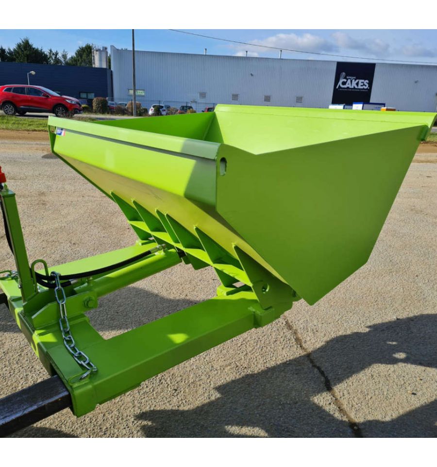 Voici notre godet à vrac hydraulique, charge de 1 à 1,5 T ! Ce godet a des prises directes pour les fourches. Il sert de reprise au sol pour les céréales, copeaux, engrais, sable, etc. Ce godet hydraulique a une capacité de 0,25 à 1,1 m³. Son basculement se fait par 1 vérin DE.