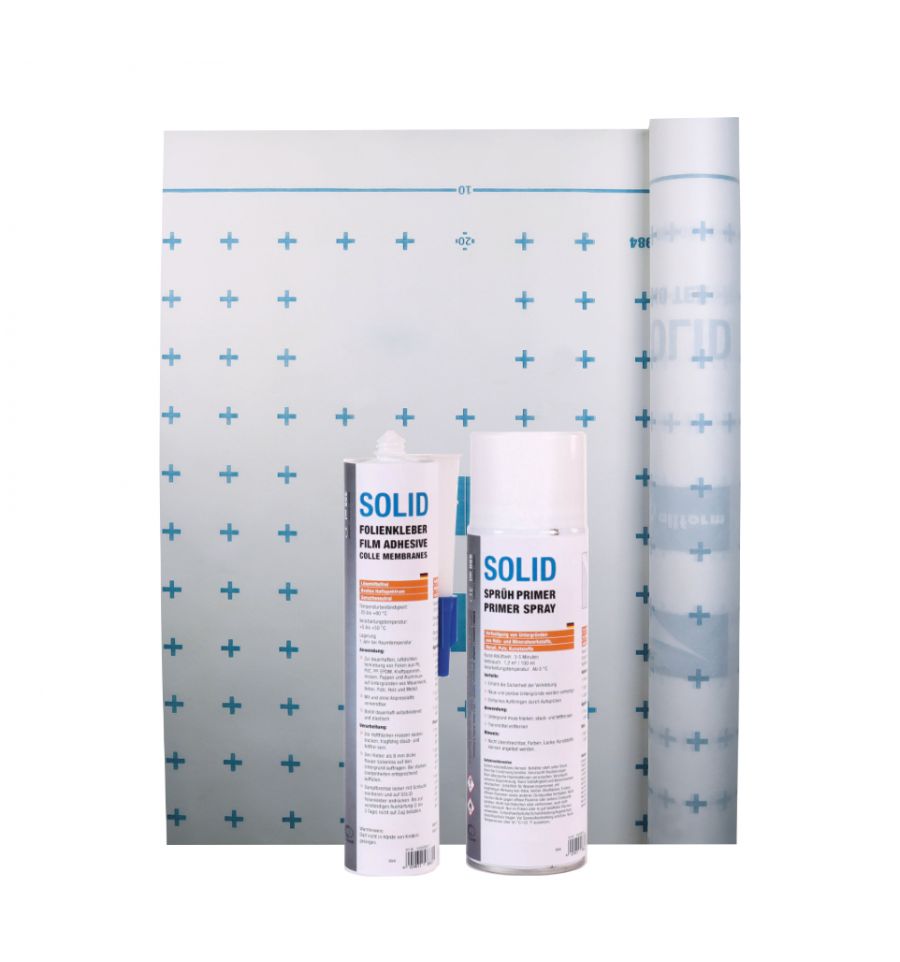 Optez pour la version en kit incluant : un rouleau d'écran pare vapeur, 20 cartouches (300ml) de colle et 12 flacons en spray (500ml) de primer.