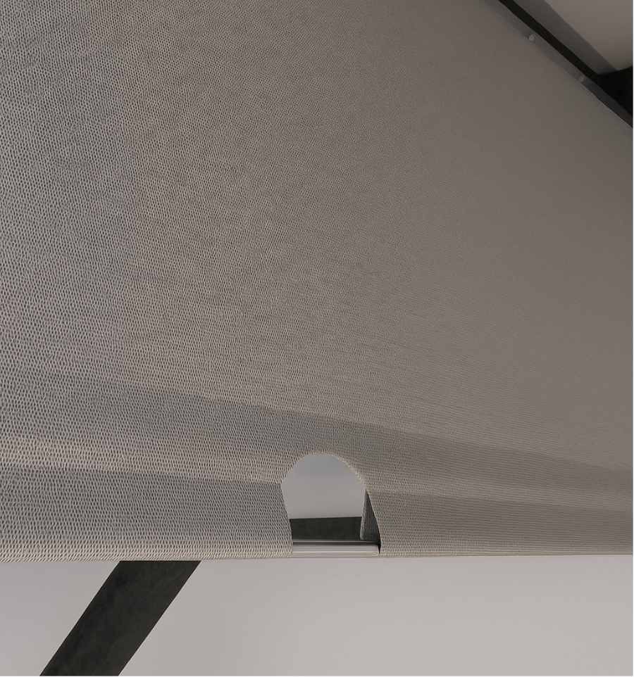 Les écrans se positionnent sous toiture plate et leur conception en textile souple permet de pouvoir les adapter simplement aux spécificités de tous les bâtiments. En effet, même en cas d'obstacle du type gain de ventilation, pont roulant ou structures irrégulières, le tissu s'adapte aux aspérités. Nous proposons par ailleurs l'écran de cantonnement adapté pour les toits double pente de vos bâtiments.