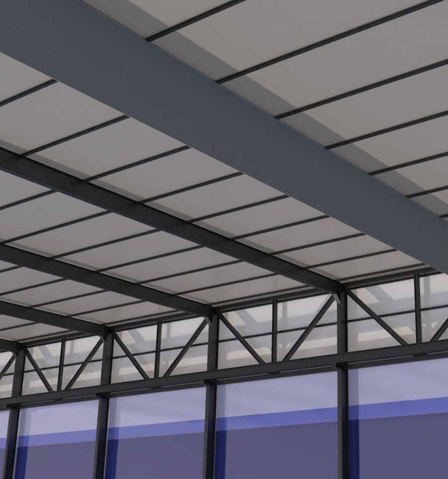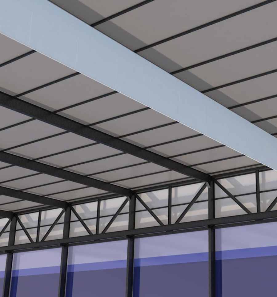 Installé directement sous la toiture, leur conception en tissu de verre leur permet de s'adapter aux irrégularités des plafonds.