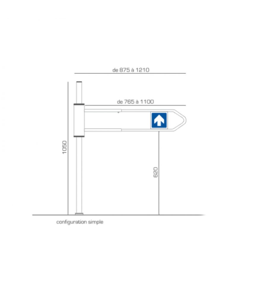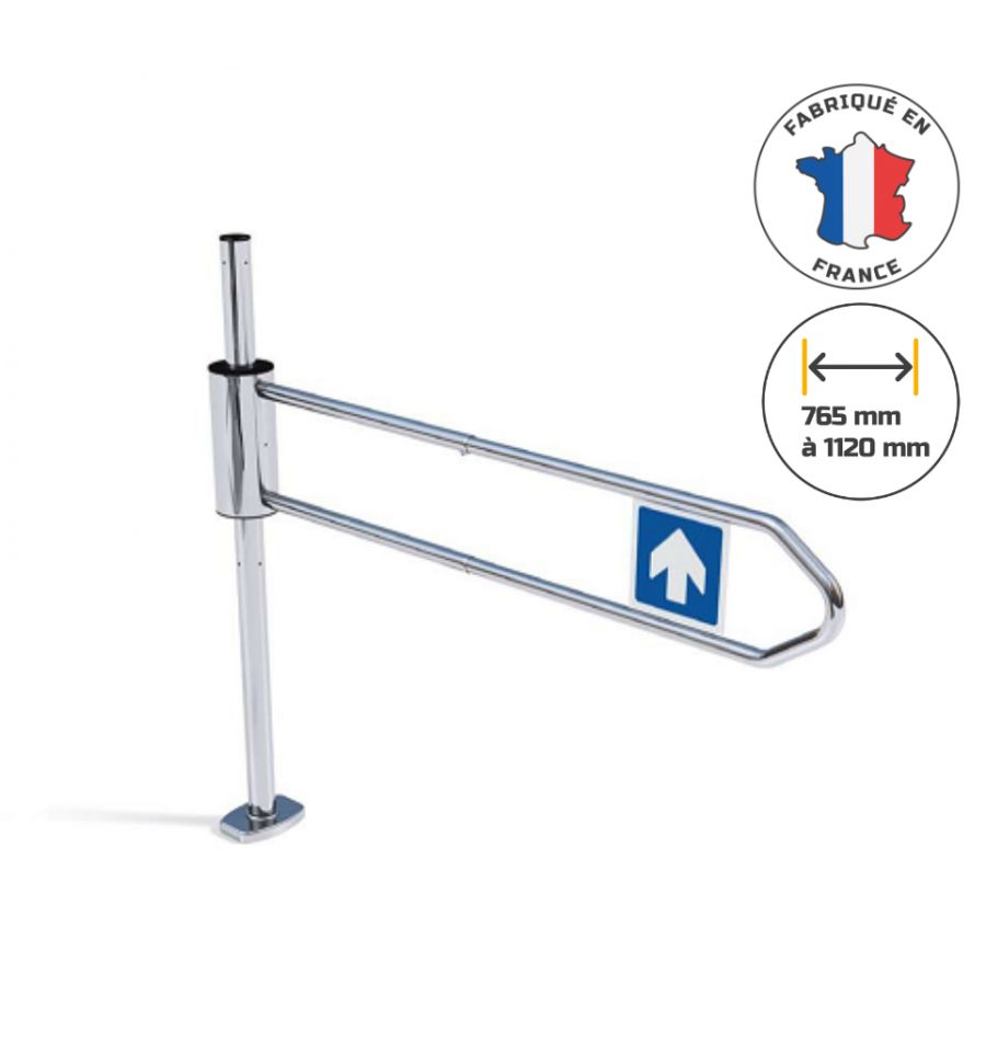 Le portillon d'accès magasin fixe est idéal pour les petits espaces restreints. La largeur d'encombrement totale est de 790 mm et la longueur du bras seul est de 680 mm.