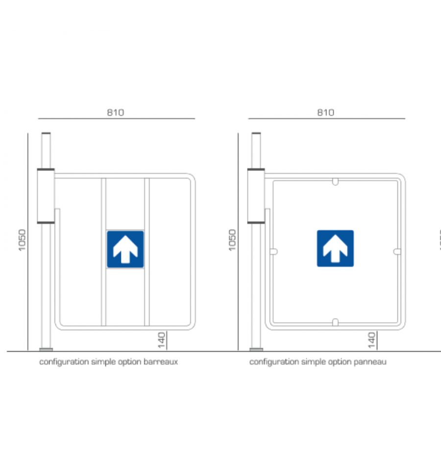 Il permet d'indiquer un accès (Face A) ou un sens interdit (Face B) et est disponible en simple (ouverture gauche / droite) ou double modèle.