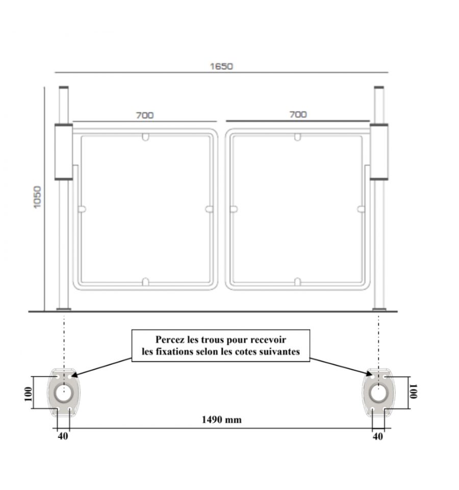 - Largeur du portillon : 700 mm