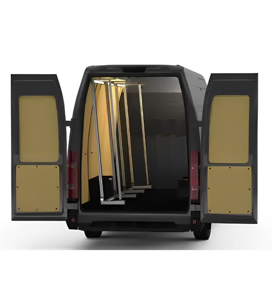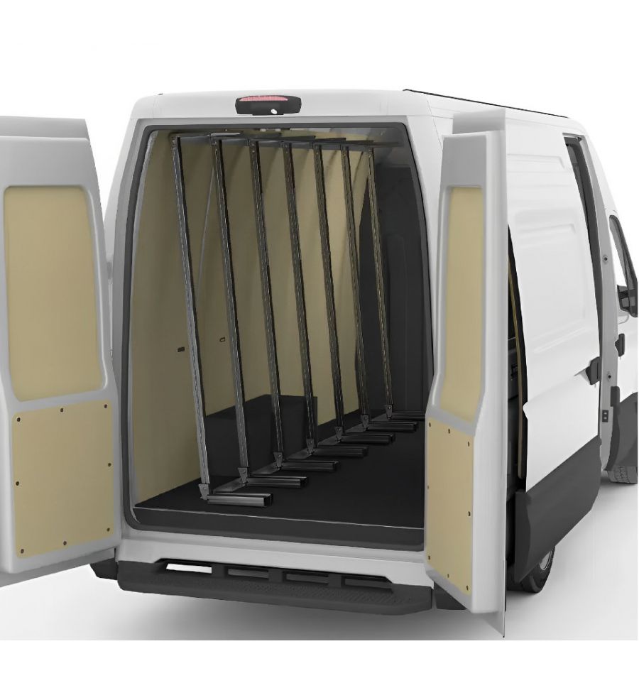Ce cadre en aluminium s’installe à l’intérieur de votre utilitaire (kit visserie fournis), à droite ou à gauche, pour maintenir vos matériaux en toute sécurité pendant le transport.