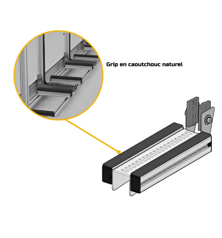 Les supports bas sont équipés d'un revêtement en caoutchouc naturel haute densité pour assurer un grip optimal de vos chargements. Ils sont également rabattables et disponibles en 300 mm ou 500 mm.