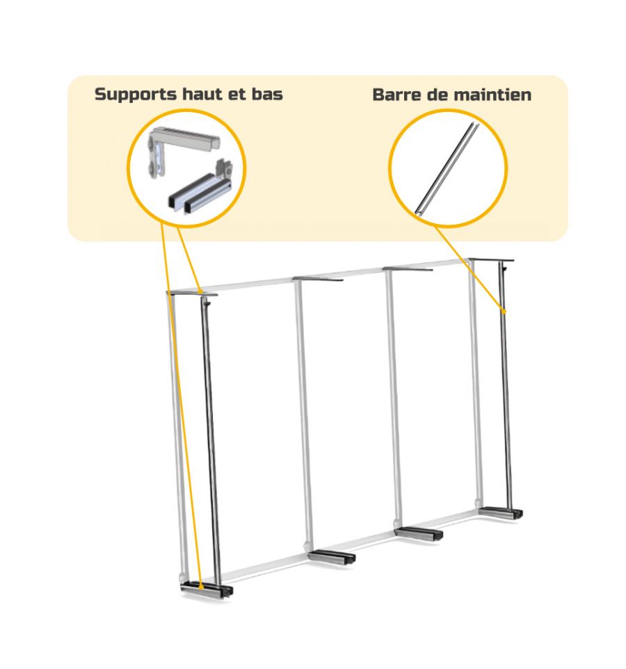 ⚠️ Important : les barres de maintien nécessitent obligatoirement un support haut et un support bas pour être installées.