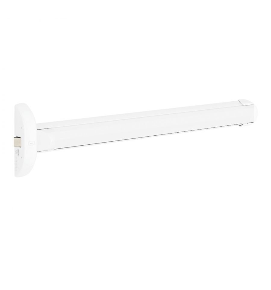 La barre antipanique 1 point est fabriquée à partir de matériaux de haute qualité : pêne en acier et barre en aluminium laqué.