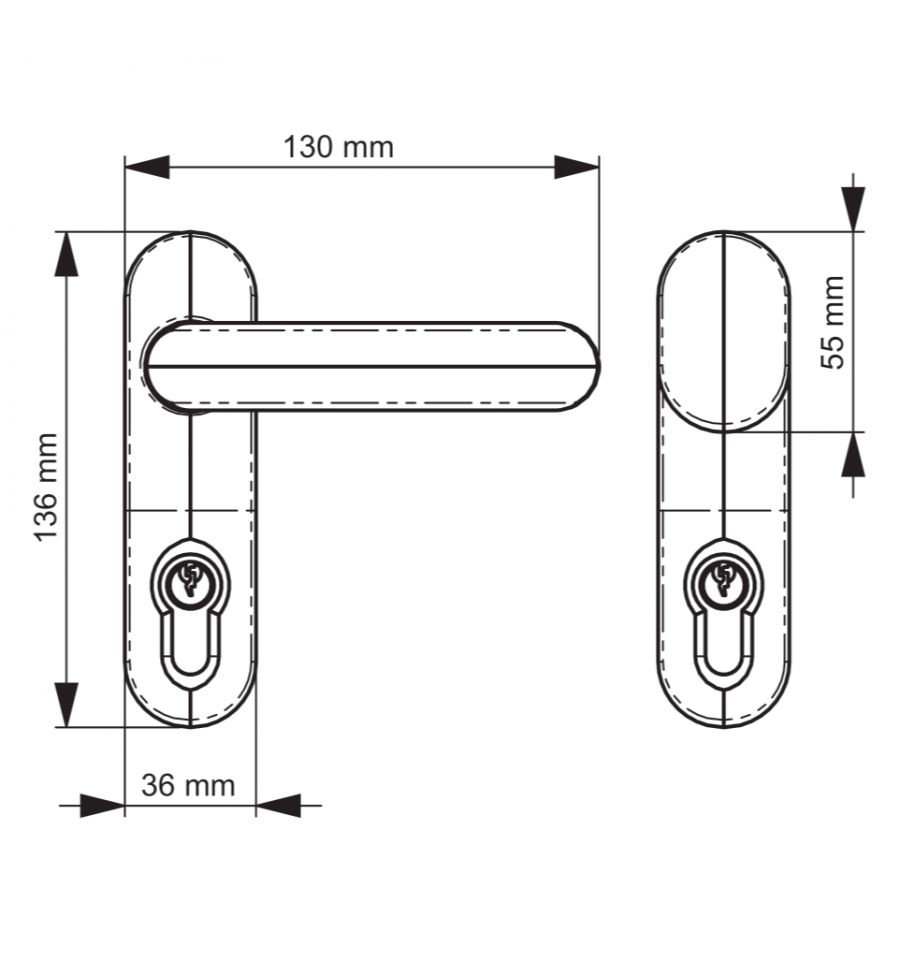 Notre module extérieur barre anti panique peut être équipé d'un demi-cylindre de 400 mm de longueur (profil européen).