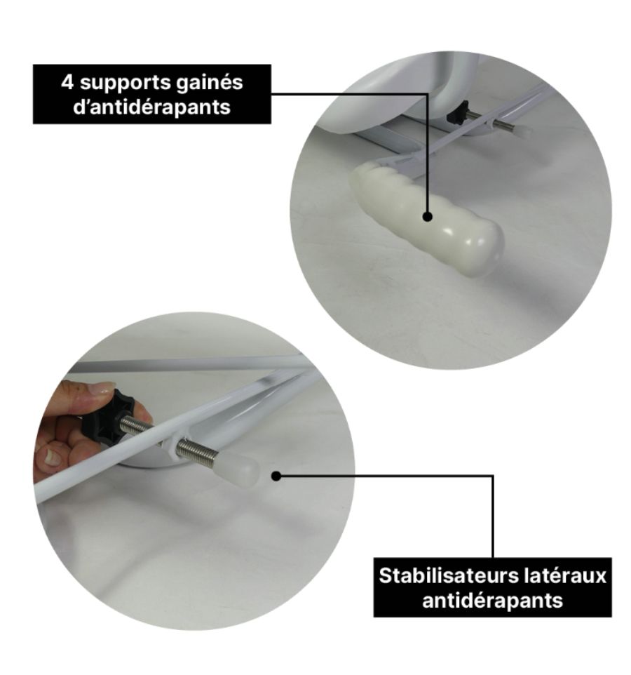 Sécurisé, ce fauteuil d'accès est doté de 4 supports antidérapants et de stabilisateurs.