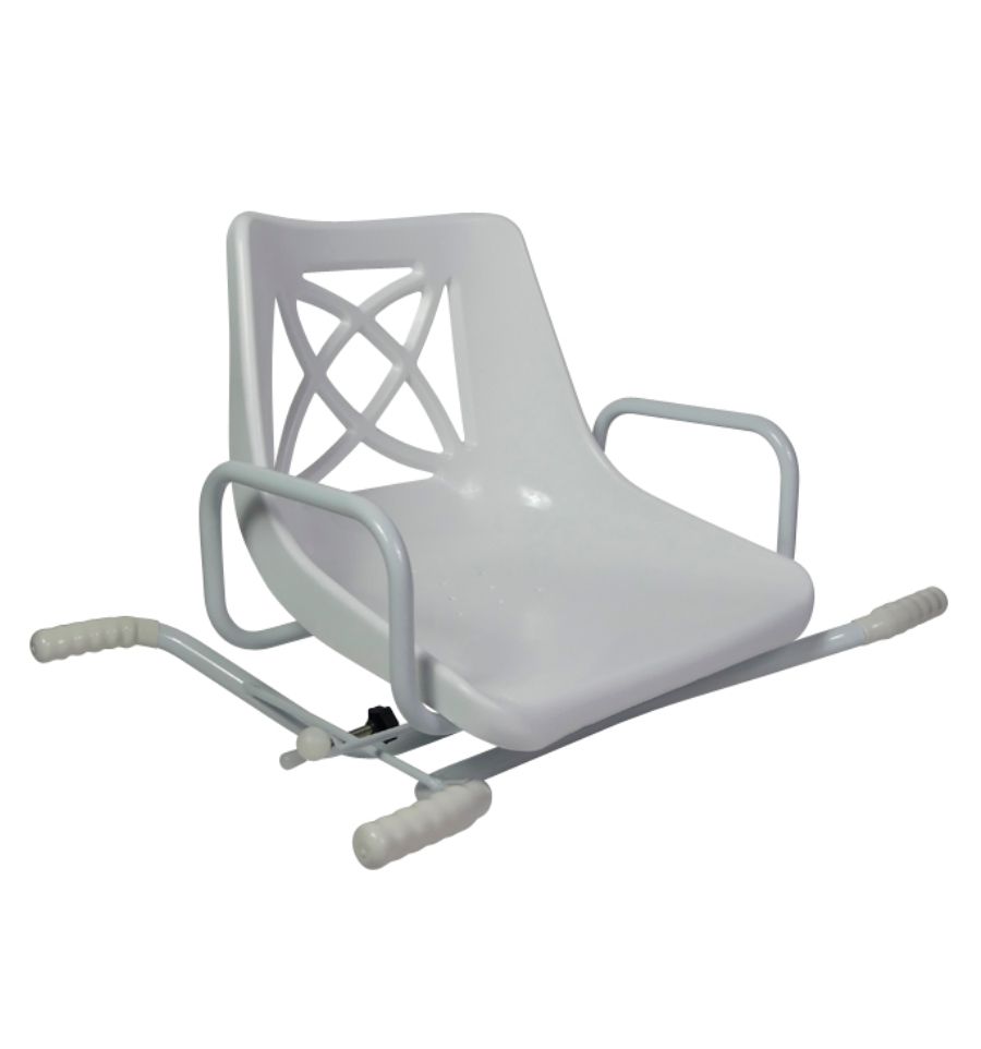 Découvrez le siège de bain pivotant vous permettant de vous asseoir en dehors de votre baignoire, et de pivoter doucement pour y entrer sans efforts.