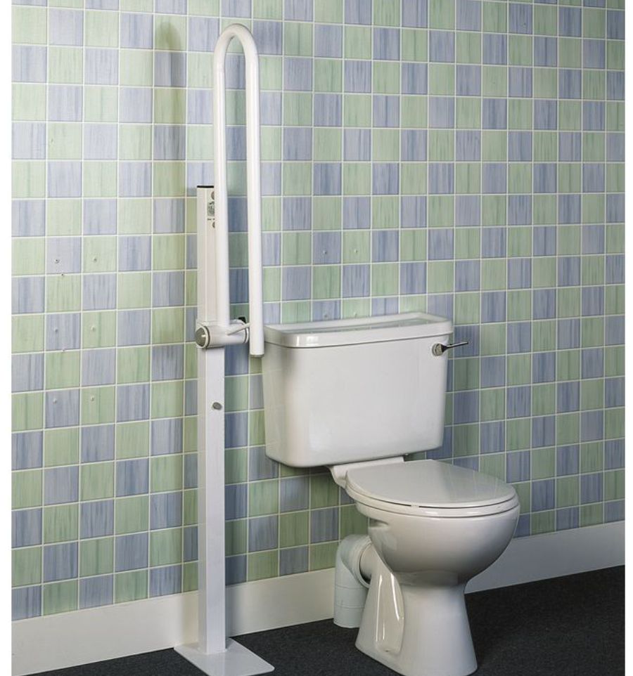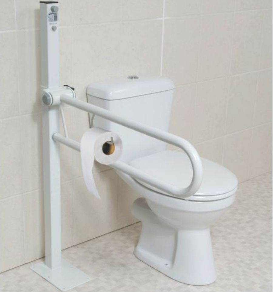 La barre d'appui rabattable sur colonne est un équipement médical permettant aux utilisateurs de s'aider à se relever seul lorsqu'ils sont aux WC. Cet équipement se fixe au sol (visserie non fournie).