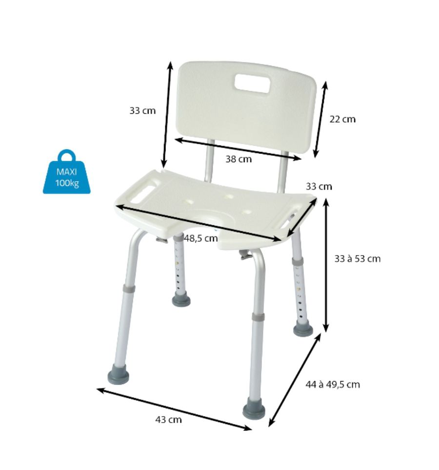 La chaise de douche réglable en hauteur et propose 8 hauteurs.