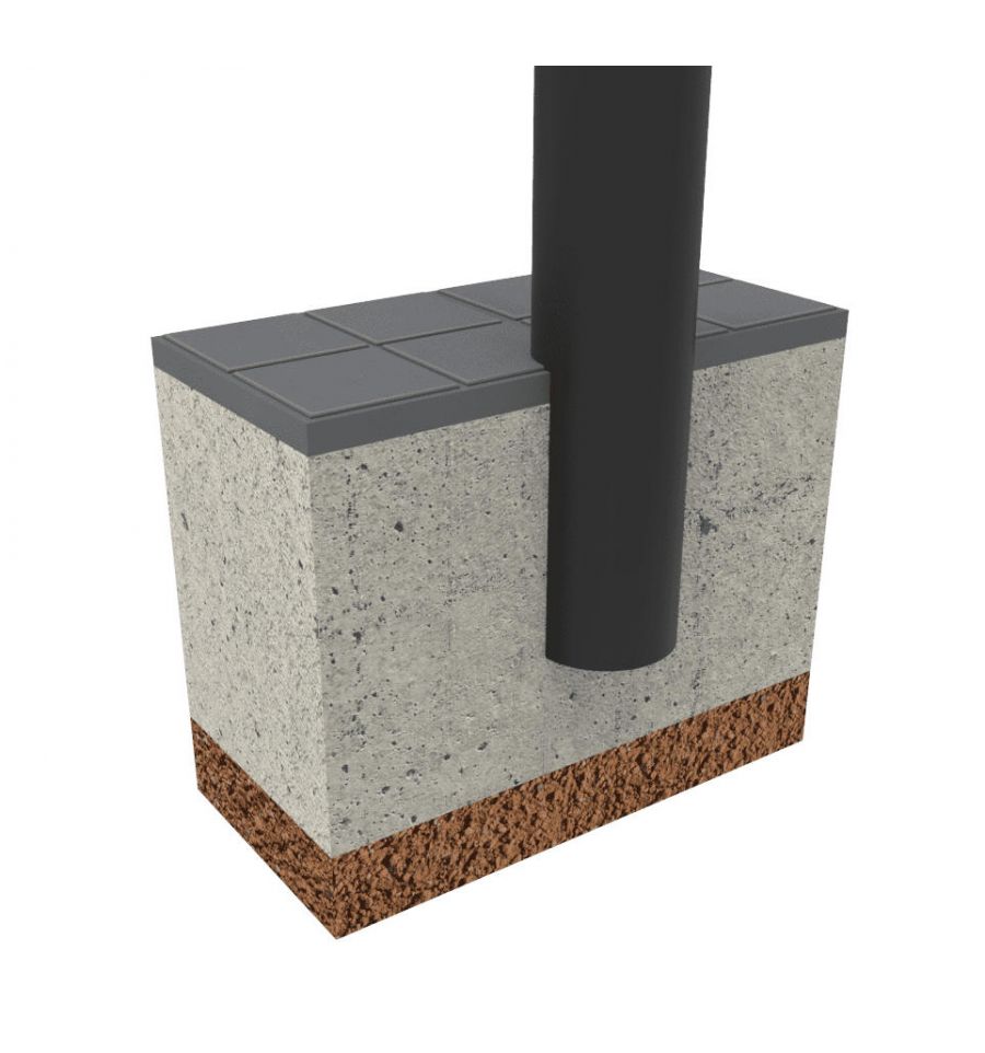 Il convient d’abord de réaliser un trou conforme aux dimensions de la borne, puis de couler une semelle en béton afin de constituer une base stable.