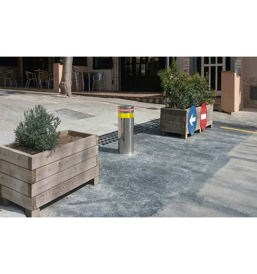 Conçue en inox 304, cette borne escamotable automatique est commandée par une armoire sécurisée à clé, intégrant un automate programmable.