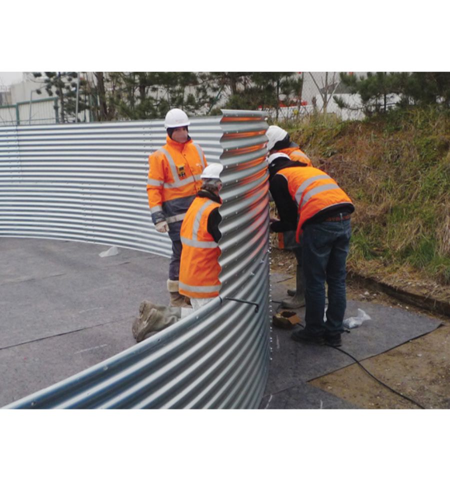 Comme la citerne incendie en acier 30m3, sa structure en tôle ondulée acier Magnelis et son liner en PVC armé 850 g/m2 assure une protection maximale contre la corrosion, les chocs et les UV.