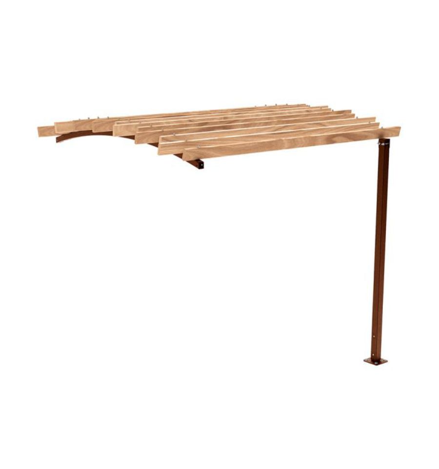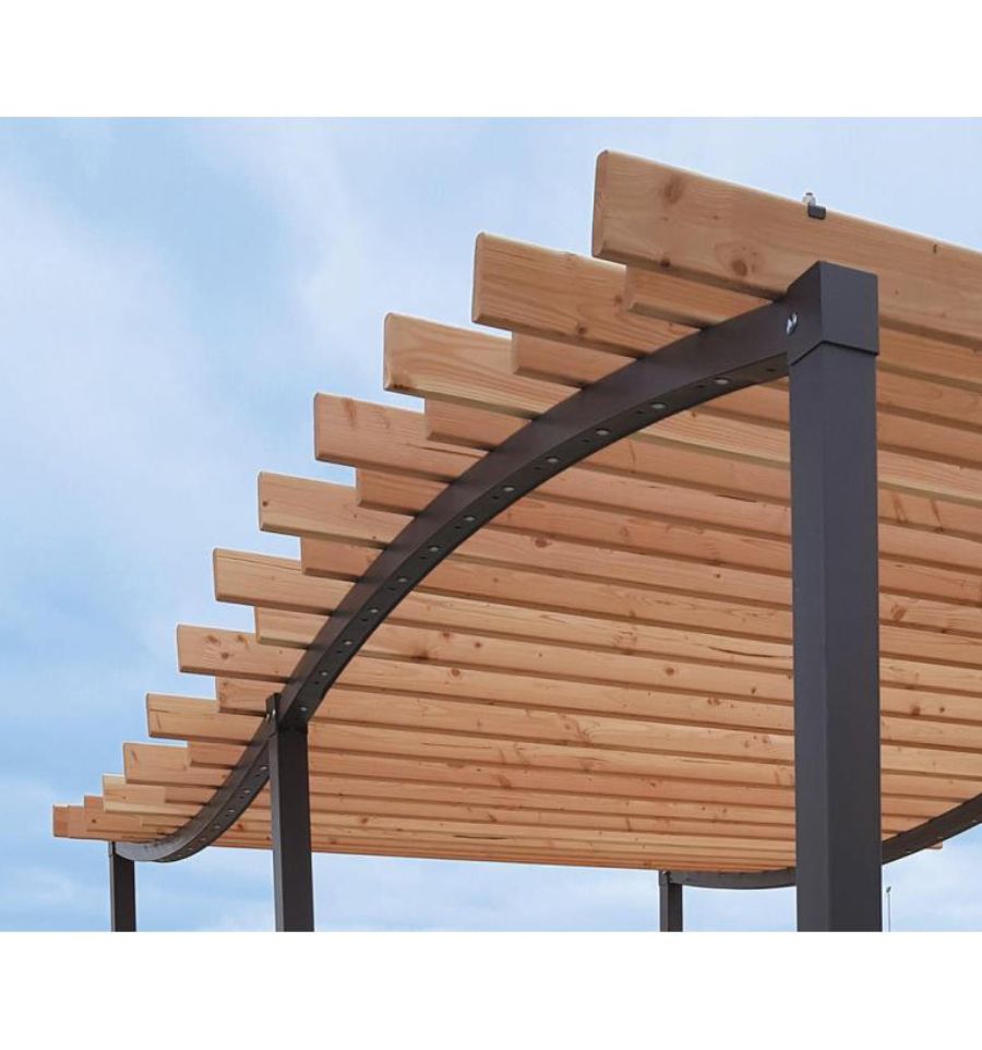 Sa toiture, composée de 14 lames en bois résineux brut de 36 mm d’épaisseur, peut-être montée en dôme ou en creux. Cette caractéristique vous permet d’opter pour un style qui conviendra à l’architecture des bâtiments autour tout en garantissant une bonne protection solaire. Son bois apporte une touche naturelle qui est très appréciée dans les milieux urbains.