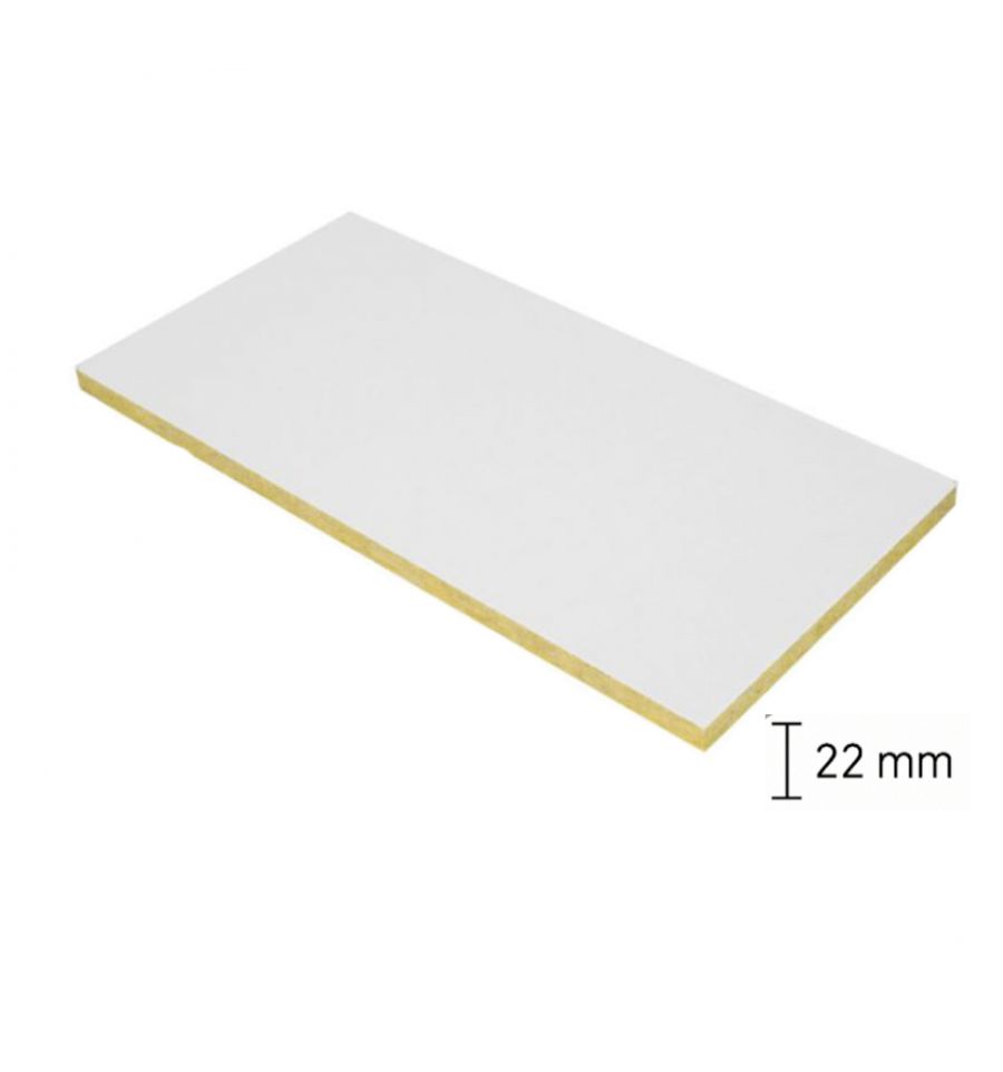 La face visible est en voile peint lisse, extra blanc. La face arrière en contre-voile. La dalle de faux plafond 120 x 60 est fabriquée avec 40% de matériaux recyclés. Aussi, elle dégage de faibles émissions de COV (classées E1 selon la norme EN 13964 / EN 717-1).