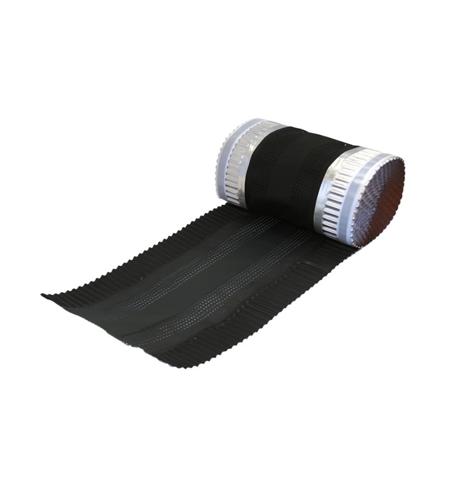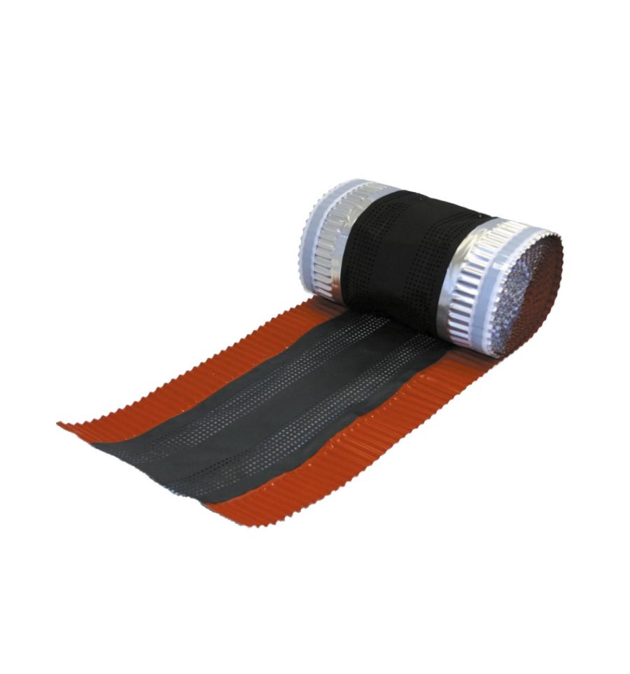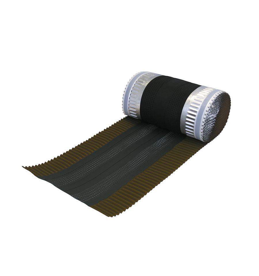 Le closoir de faitage souple est composé d'un corps en non-tissé polypropylène enduit (anti UV), perforé sur ses flancs et de bavettes en aluminium.